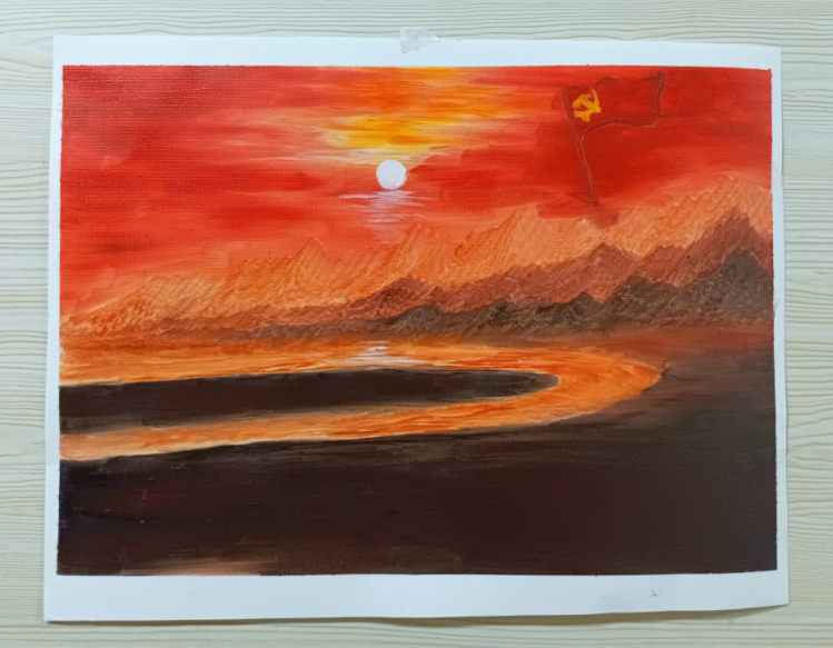 红色基因也是一个重要的主题。在《黄河行,党史路》中,大家看到了荡气回肠的九曲黄河,看到了九曲黄河最后一道弯拐在兰考。作者表示,黄河之水天上来,前行道路曲折蜿蜒,仿佛流淌着中国共产党的辛酸历程,它记录了岁月的斑驳,也见证了党的成长。黄河的每一个印迹,都是党带领华夏儿女走的每一步。连绵起伏的山丘,脉脉相连,意味着传承红色基因,践行初心使命。