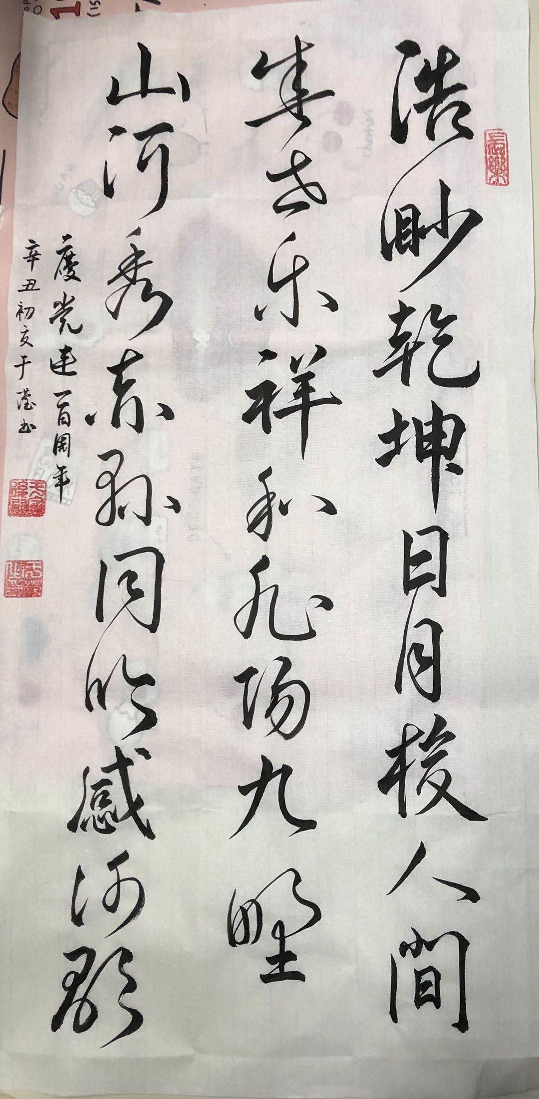 除了绘画作品外,书法作品同样精彩纷呈,当代青年也在用自己的方式“书”写着中国共产党百年奋斗史。