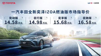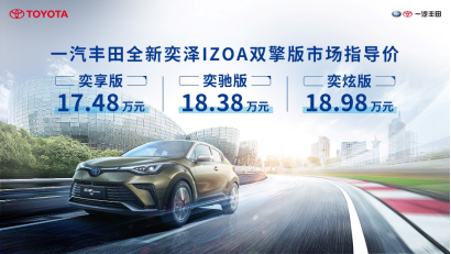 6月6日,全新奕泽IZOA双擎版正式上市,首次搭载先进的丰田2.0L混合动力发动机,依然保持原汁原味的奕泽家族潮流炫酷设计。同时,配置全面升级的全新奕泽IZOA燃油版也同步推出。至此,奕泽家族形成了包含燃油、混合动力、纯电动三大动力形式在内的完整家族品牌。