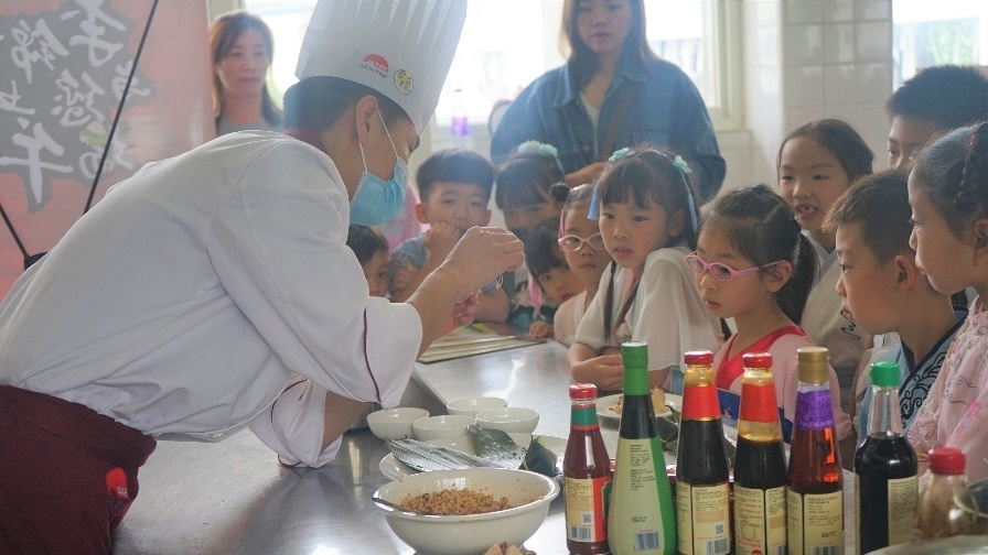 现场欢声笑语、其乐融融,不一会儿工夫,一个个形状各异的粽子便呈现在大家面前。“这是我第一次做粽子,还在里面多加了一坨肉,因为我爸爸最爱吃肉了。”小学二年级的妮妮双手捧着自己亲手做的粽子兴奋地说。