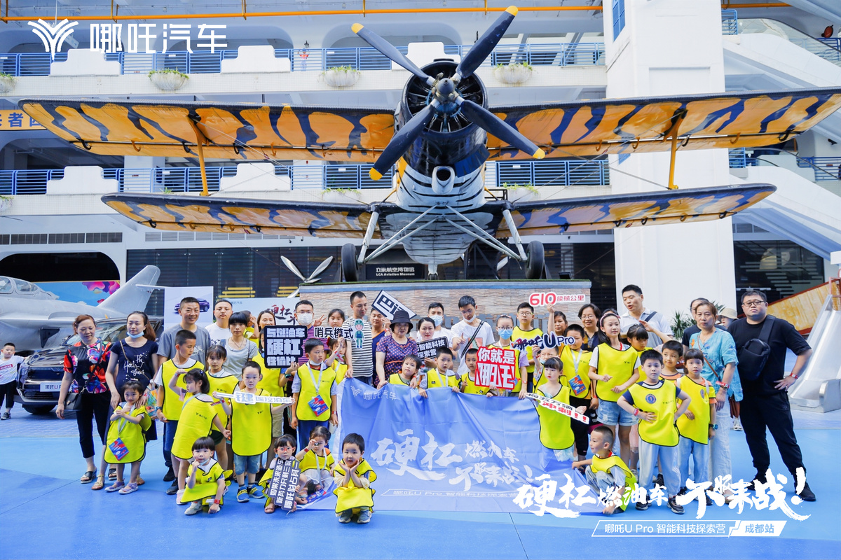 6月8日,“硬杠燃油车 不服来战” 哪吒U Pro智能科技探索营成都站在立巢航空博物馆开展,邀请成都亲子家庭一起探索现代空天技术与智能汽车的科技。