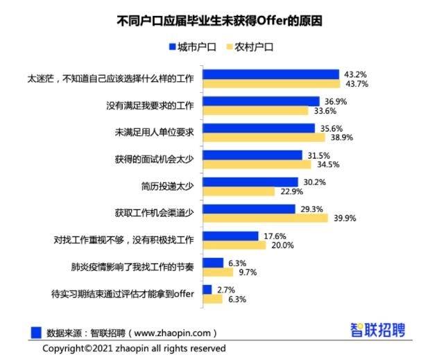 在就业心态方面,作为互联网原住民的00后求稳心更甚,期望薪资也较去年有所提高,但仍低于疫情前水平。但在求职结果上,应届毕业生因迷茫、没有目标而难以获得心仪offer的占比最为明显。面对这样的就业形势,企业与高校应关注新时代高校毕业生就业市场的新变化,开展就业相关的科学研究,为学生提供有效的就业指导。