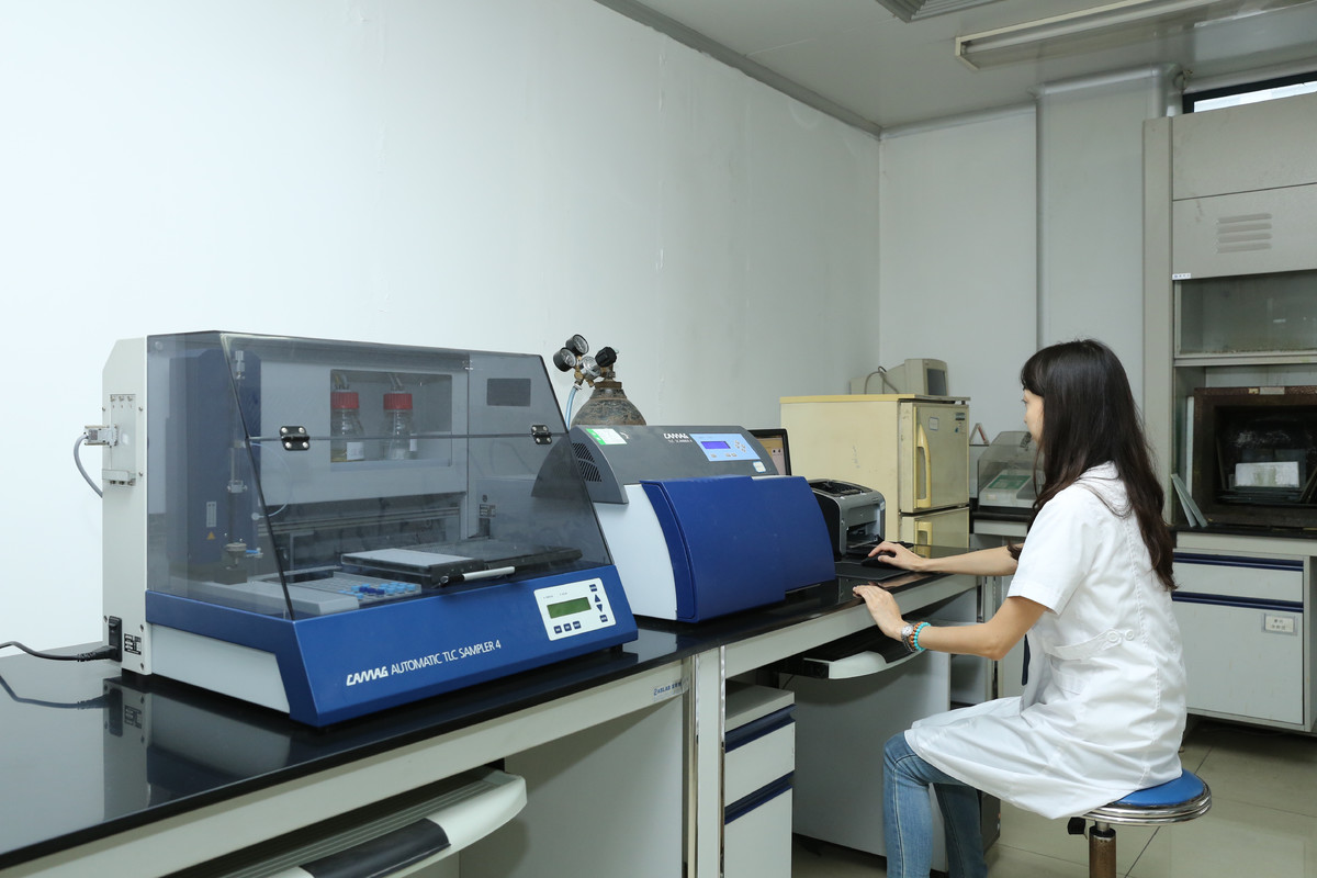 中药材质量监测评价重点实验室工作人员正在进行中药材薄层扫描解析