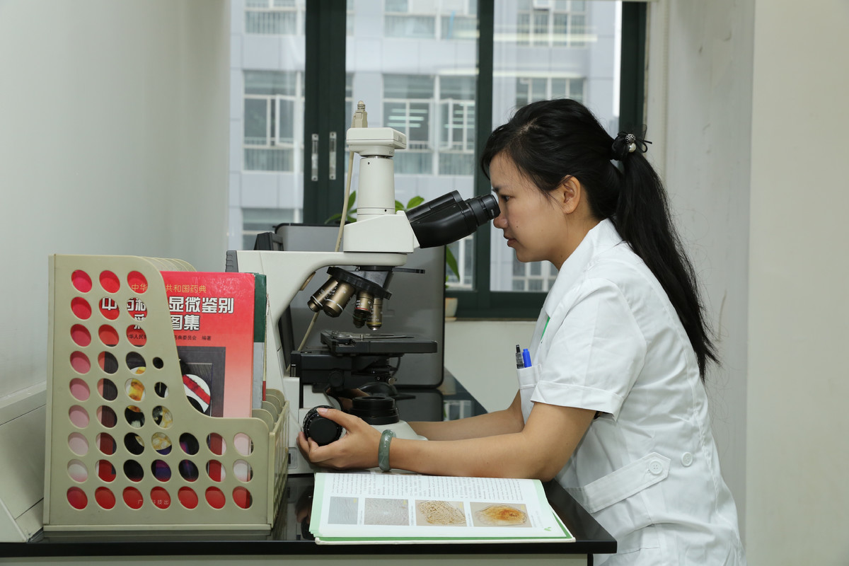 中药材质量监测评价重点实验室工作人员正在进行中药材显微鉴定