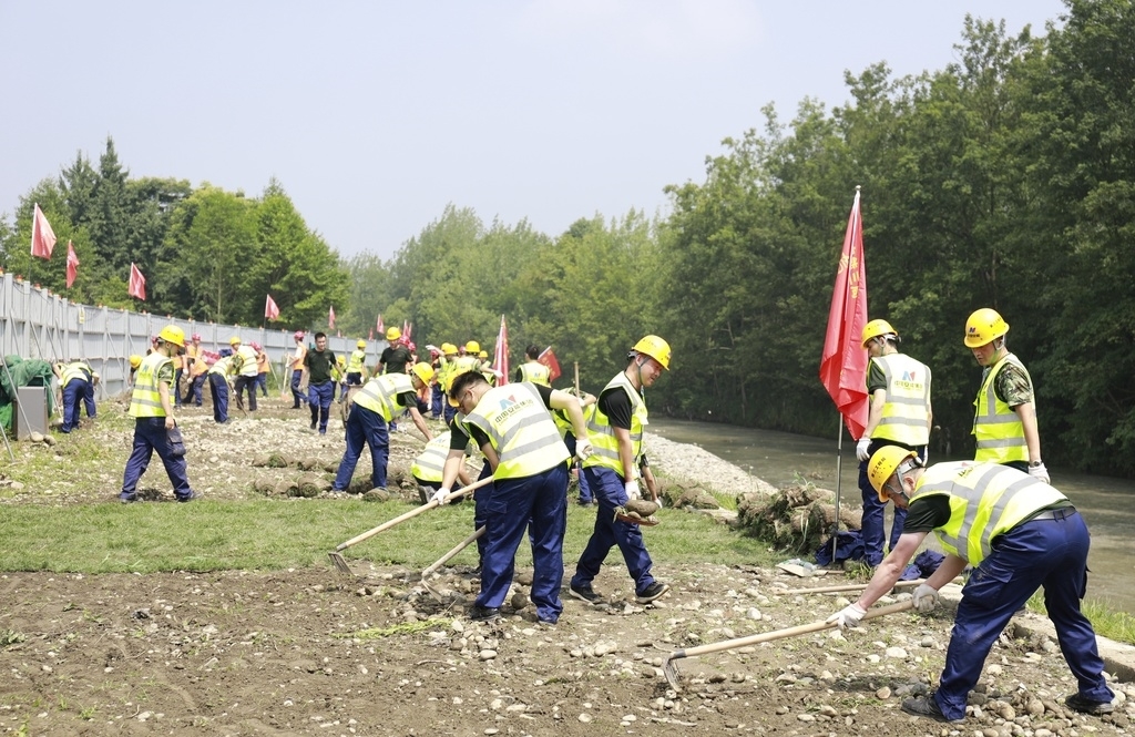 6月10日,中国安能三局机关党委5个党支部全体党员,深入成都分公司江安河项目部开展劳动实践活动,在D段工区开展草皮铺设施工。以支部为单位划定区域,按照除草、捡石、松土、平整、运草、铺设六道工序严格操作。