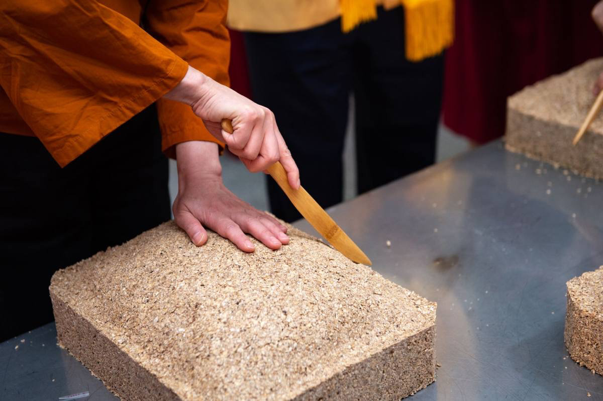 端午时节,气温升高,万物勃发,微生物群落繁殖活跃,正是制作酒曲的好时节。6月14日,吴家沟基地制曲车间,四川省作家协会副主席、著名作家梁平,《人民文学》杂志副主编、茅盾文学奖、鲁迅文学奖获得者徐则臣等著名作家、诗人五十余位嘉宾亲自参与曲块制作,感受传统酿酒工艺,并与郎酒定下“8年之约”——8年后凭手中酒券,领取用当日亲手所制之曲酿成的青花郎。
