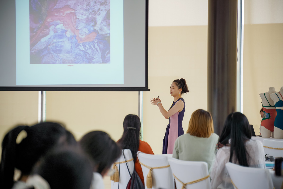 宋汝雯指着现场展示的泳衣成品,介绍如何从海洋中回收废弃渔网提取弹性纤维织成泳衣,并与成都消费者分享环保与可持续时尚理念相结合的可能性。她表示,泳衣制造过程中的闲置面料亦会再利用做成限量单品或者艺术展品。
