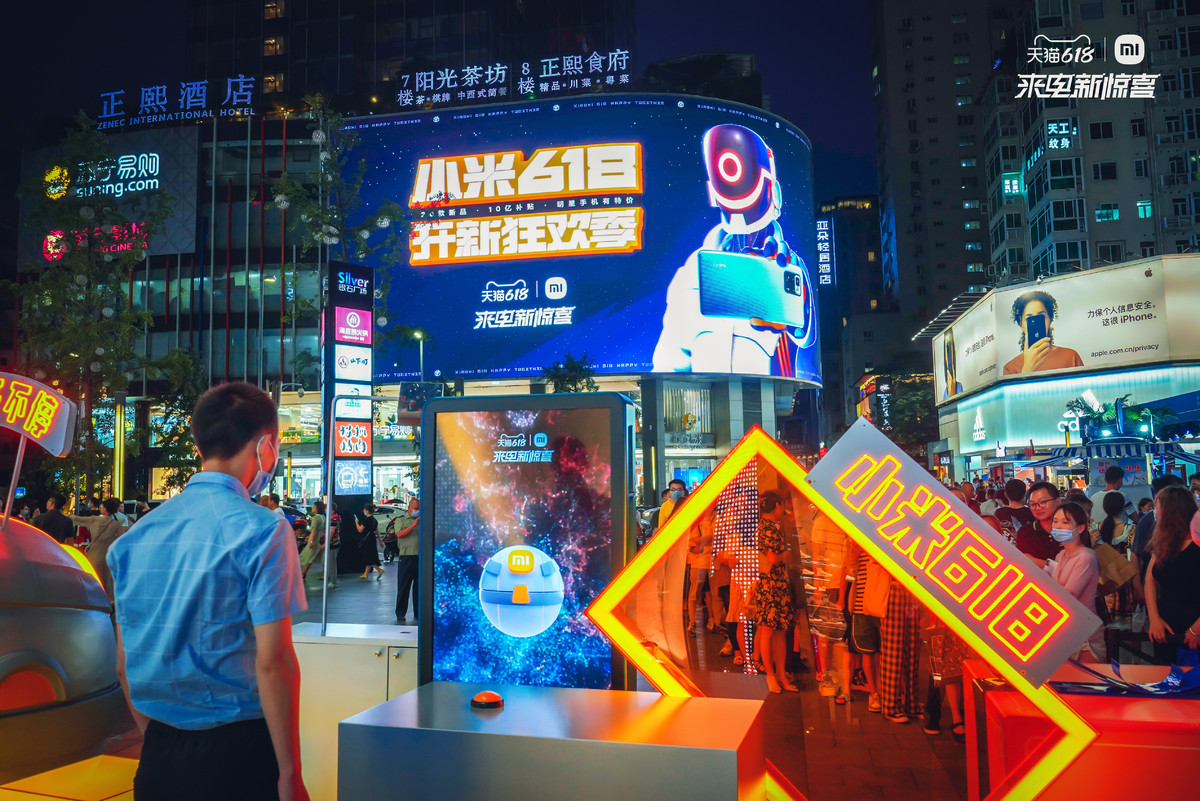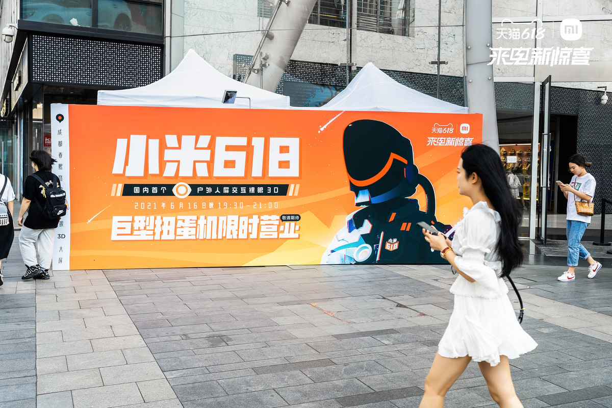 6月16日晚,成都春熙路惊现一台巨型扭蛋机。巨型扭蛋“飞出屏幕”,震撼的视觉效果吸引了大批游客的驻足拍摄。城市夜景与科技景观美学的融合,让这枚小米618“开新扭蛋”在当晚成为了成都别具匠心的城市新景观,跻身游客和市民争相打卡的城市标识,还冲上了微博和抖音的热搜榜,引发社交媒体网友热议。