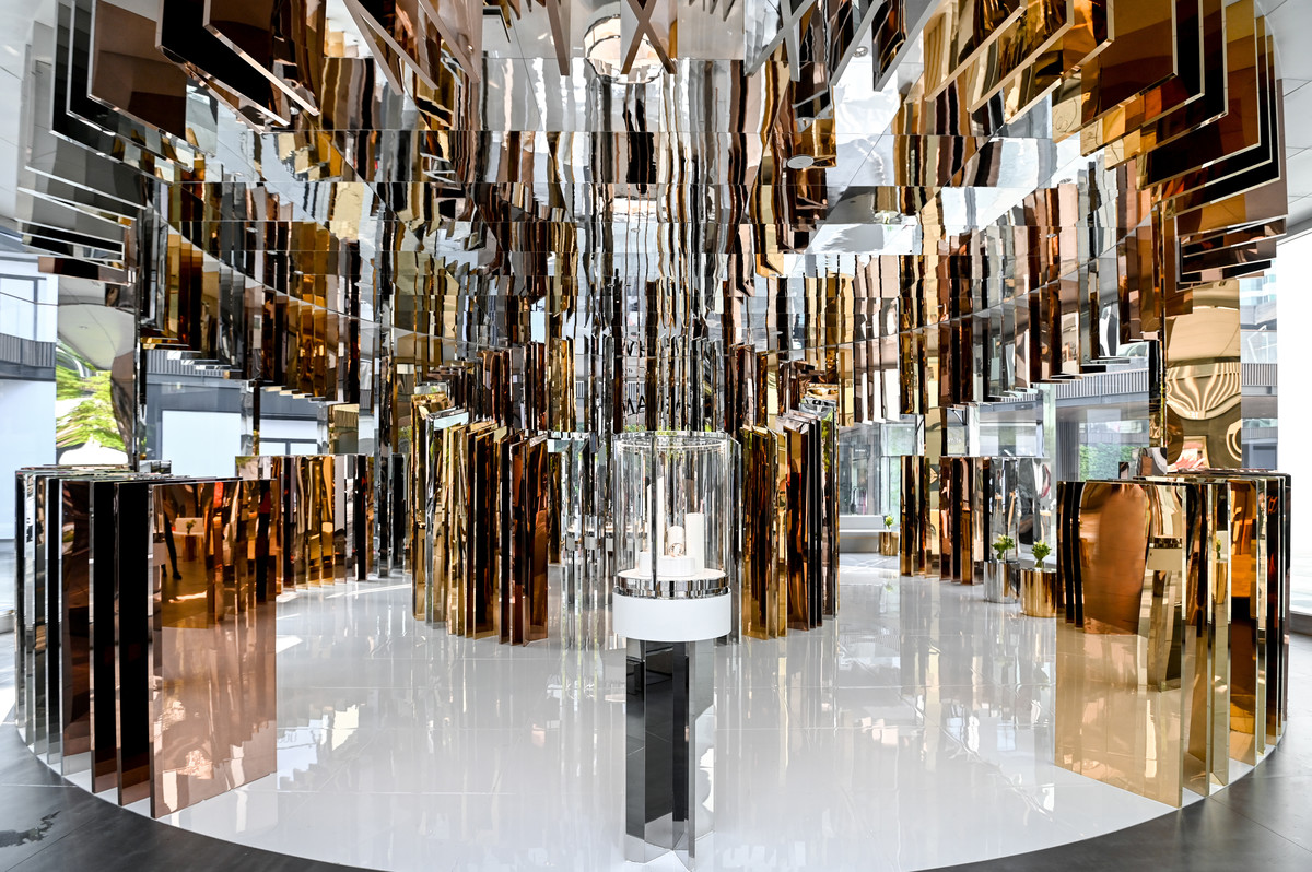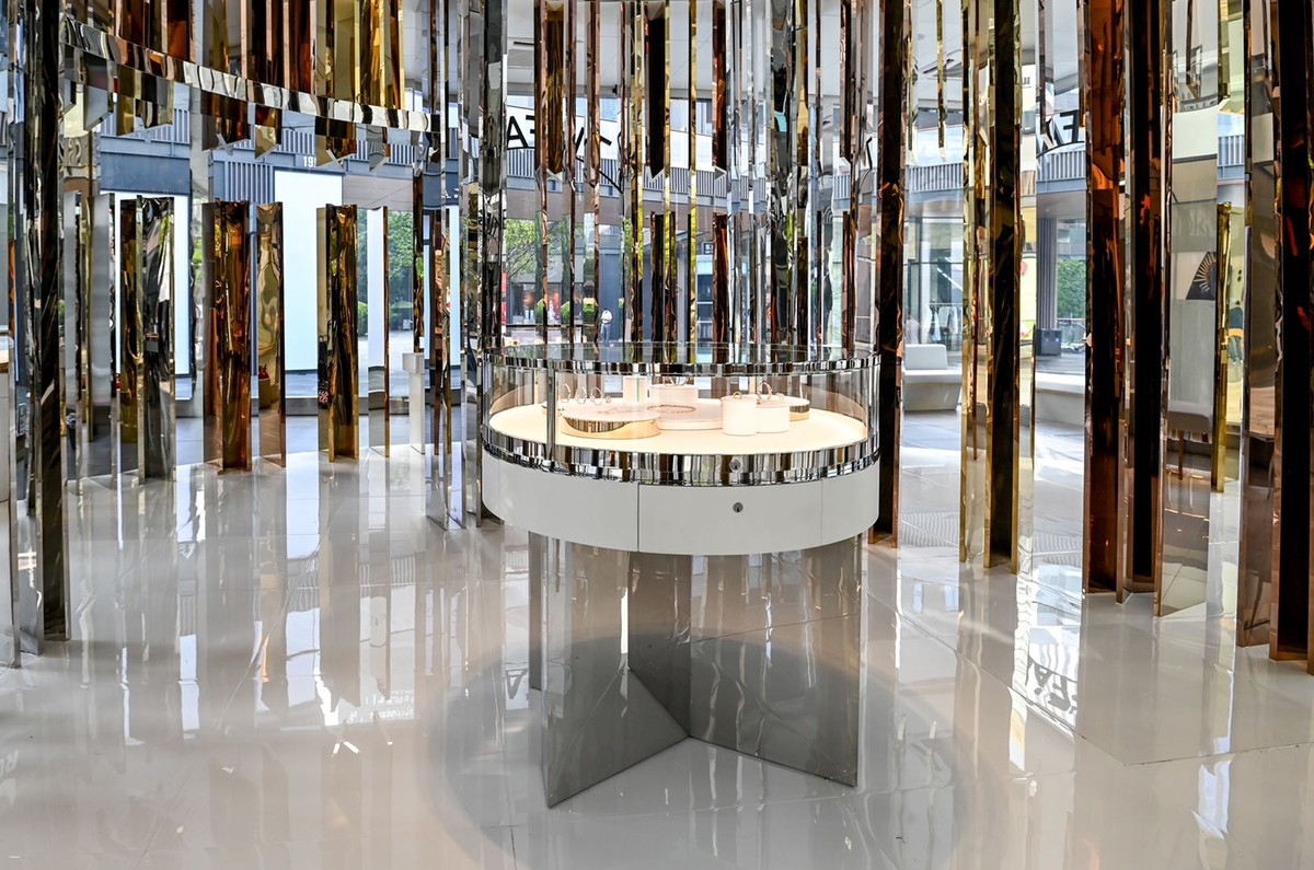 四川在线记者在现场看到,限时店内没有公众广泛熟知的“蒂芙尼蓝”,店招Logo也变成了以前从未曝光过的“Tiffany”新字样,镜面金属充盈着整个店面空间,颇具未来科技感。对于消费者而言,可以说这是一个有些陌生的“蒂芙尼”。