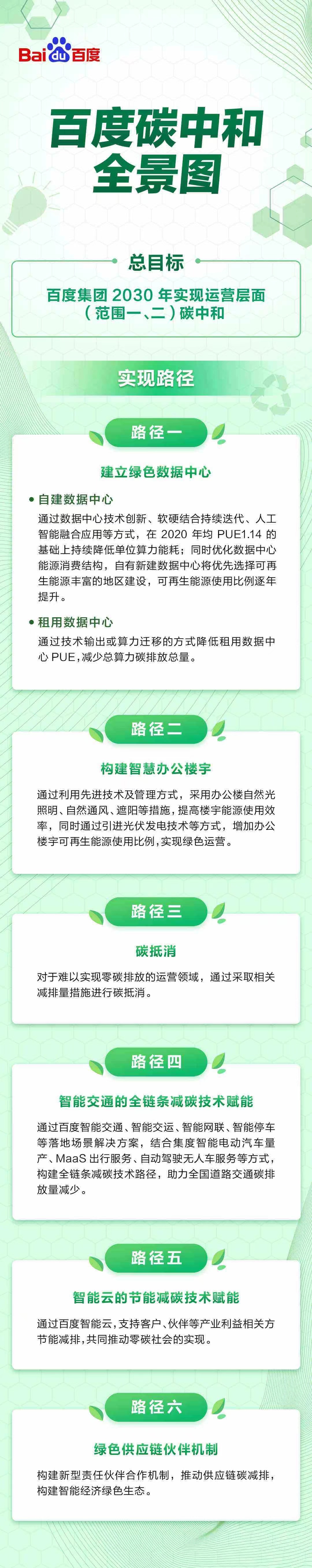 6月22日,百度正式公布在2030年实现集团运营层面达到碳中和。
