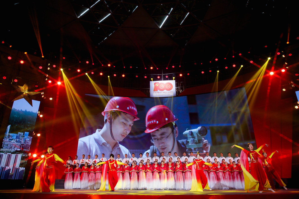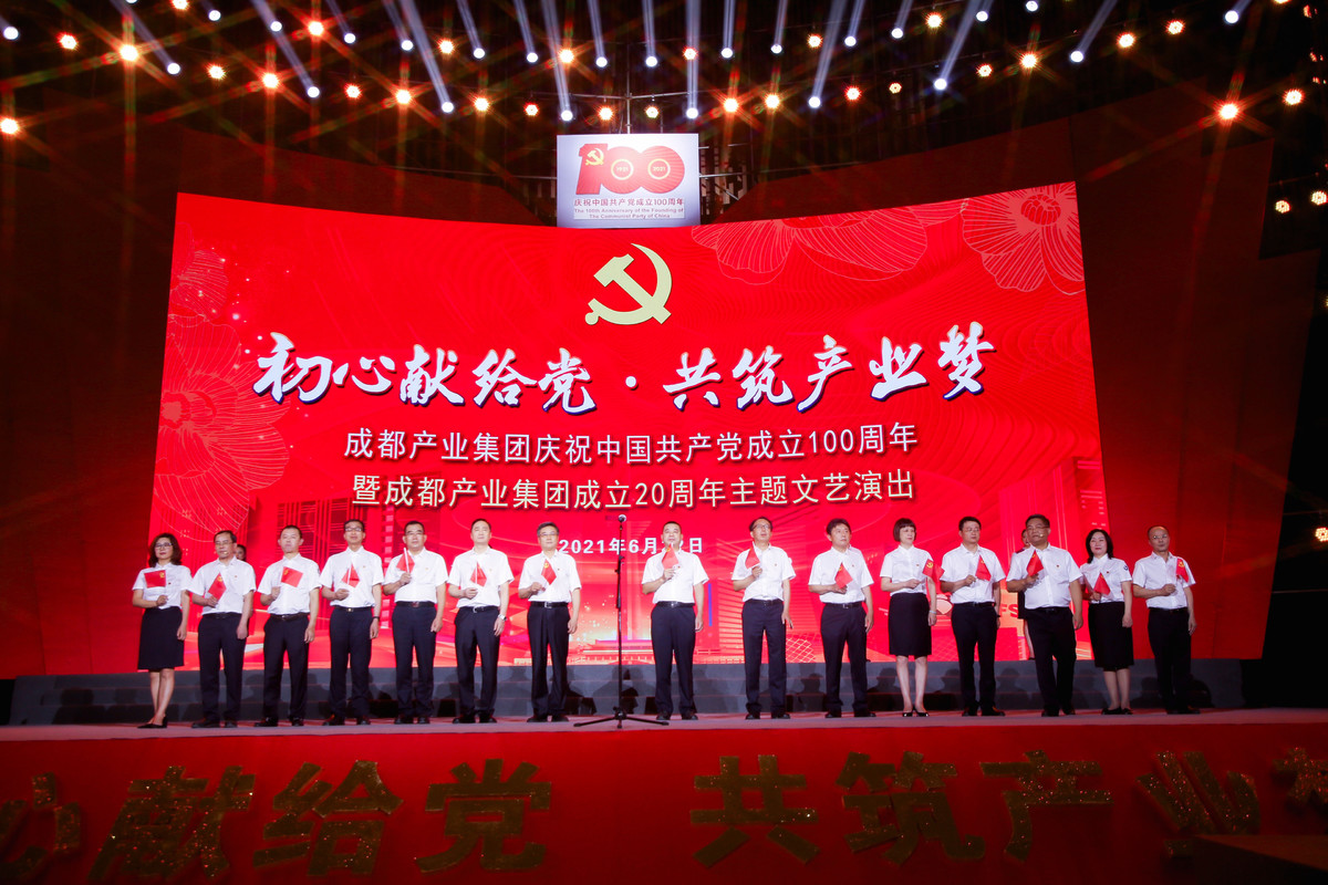为庆祝中国共产党成立100周年暨成都产业投资集团成立20周年,6月22日下午,一场以“初心献给党·共筑产业梦”为主题的文艺演出在淮州新城国际会展中心举行。