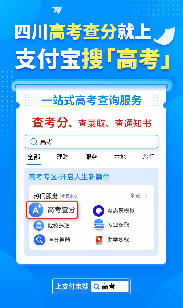 6月23日起,四川考生和家长即可在支付宝实时查询高考成绩,也可通过查分订阅服务提前订阅,发榜第一时间即可收到查分提醒推送。