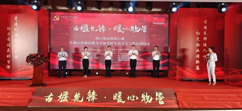 6月21日下午,都江堰市物业行业“古堰先锋·暖心物管”党建示范建设助力幸福美好生活十大工程行动启动,该市物业行业党建示范建设也正式启动。