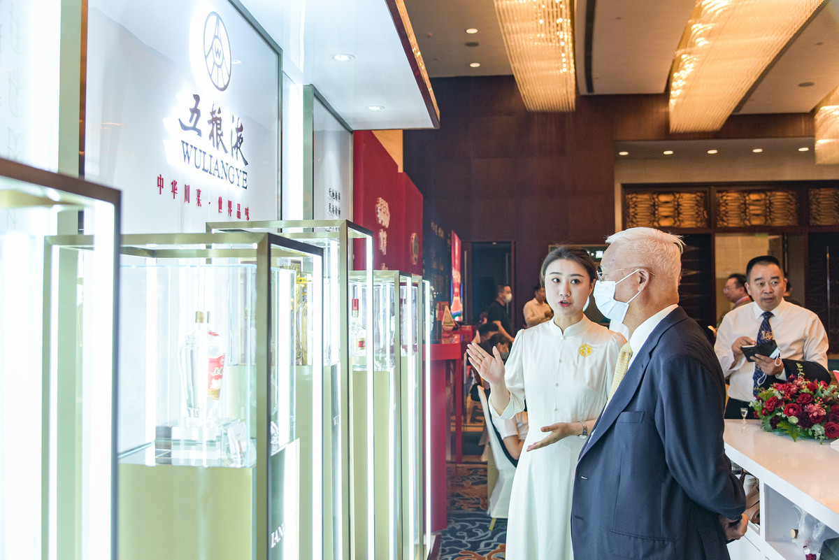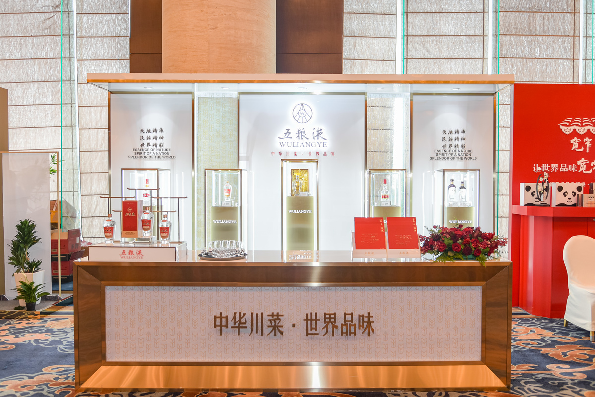 盛夏傍晚的香格里拉酒店华灯初上,来自全球不同地方、操着不同口音的参会嘉宾陆续抵达。活动现场,用中英文展示着独具特色的四川文化元素,由川酒龙头五粮液带来了中国白酒产品及文化展示,其主打产品501、经典五粮液、国际时尚版五粮液等抱团亮相,赢得现场嘉宾纷纷驻足流连。