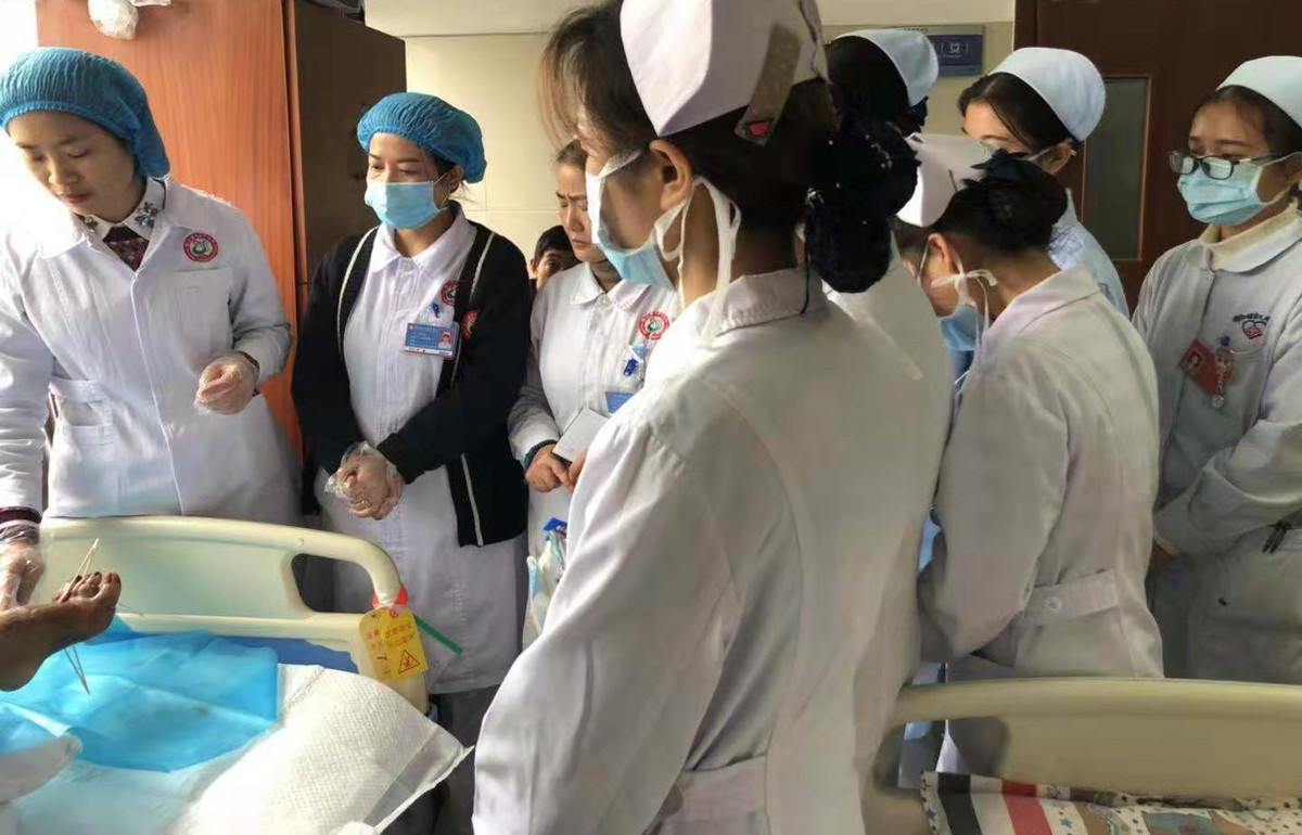 第二步,打造“伤口护理1+1+N”纵向治疗圈,帮助成都周边县市的患者与伤口门诊摆脱困境。都江堰医疗中心医联体院领导及护理部的领导下,形成联合护理团队,由陈宇定期指导都江堰伤口门诊,以此为圆心,辐射都江堰的下级周边乡镇十余家医联体基层医院,开展会诊、伤口护理延伸服务和培训伤口护士,带动都江堰医疗中心伤口门诊工作量增长2倍以上。