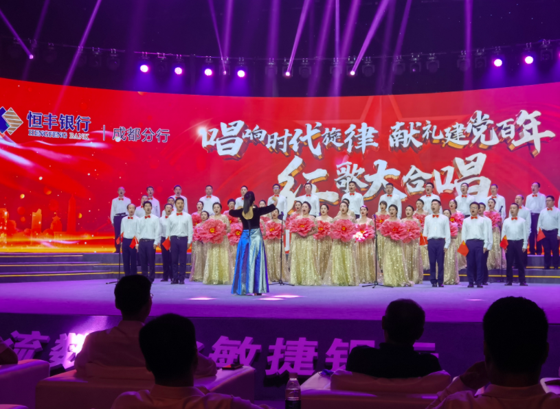 21支队伍、700多名演职人员、60天反复打磨……6月27日,恒丰银行成都分行举行了庆祝建党100周年红歌大合唱比赛,用歌声分享记忆,用旋律铭刻历史。