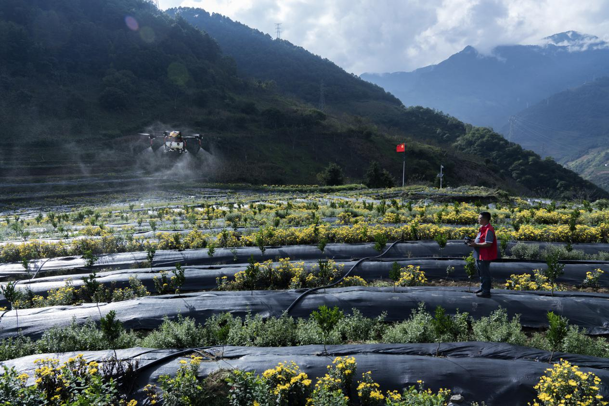 手机灌溉无人机撒药 峡谷首现科技新农人