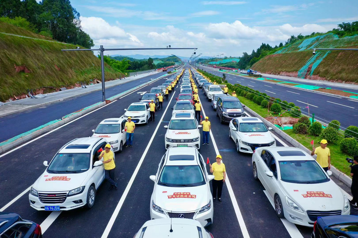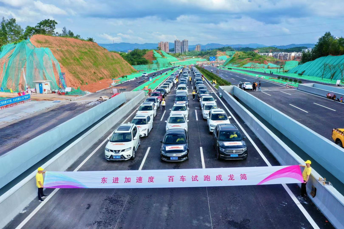 6月29日,成都交投集团成高建设公司和相关参建单位等联合主办的“东进加速度,百车试跑成龙简”活动在成龙简快速路简州新城段举行。现场100辆张贴有中国共产党成立100周年庆祝活动标识的川A车排成一列,在成龙简快速路前进,感受成都东进加速度。