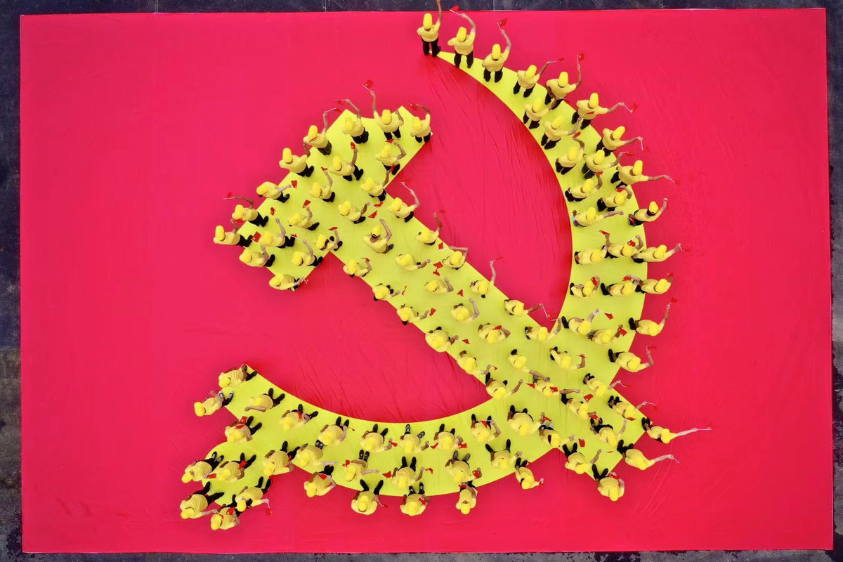 试跑活动结束后,100名身穿黄色T恤的党员群众奔向场地集合,组成了一枚中国共产党党徽图形,并在项目一线集体合唱《没有共产党就没有新中国》。“成龙简快速路目前已全线贯通。我们在通车前组织100辆车试跑,感受东进的热潮,也感悟中国共产党创立的伟大的事业。”活动主办方相关负责人表示。