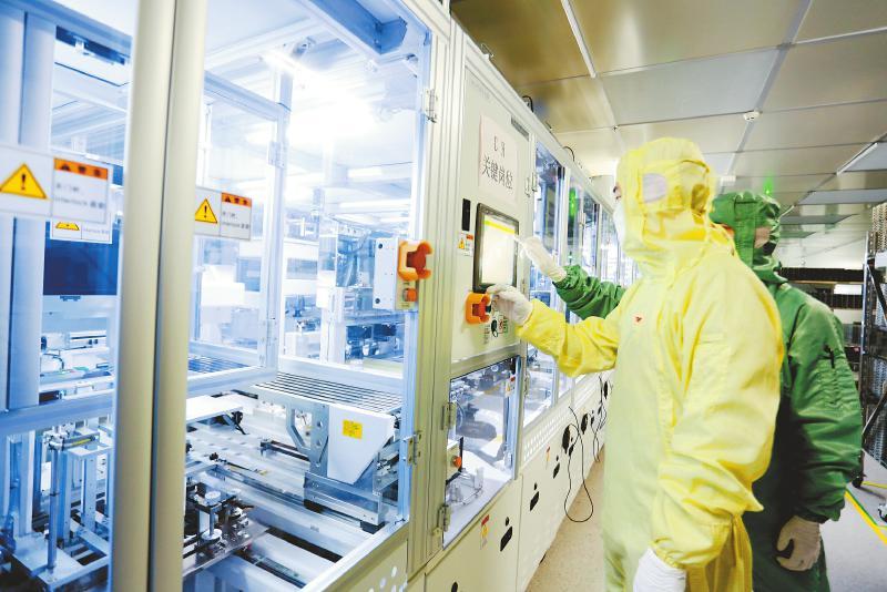 在眉山信利(仁寿)高端显示科技有限公司模组车间,工人们正在岗位上忙碌。