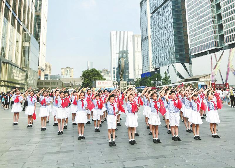锦江街头上演红色快闪活动。