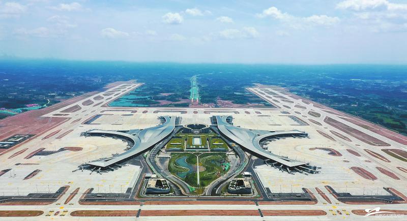 6月27日,位于成都东部新区的成都天府国际机场正式开通运营。承担“坚持国际视野做强交通枢纽优势,着力建设国家向西向南开放新门户”的殷切嘱托,十年磨一剑,神鸟驮日,振翅凌空。