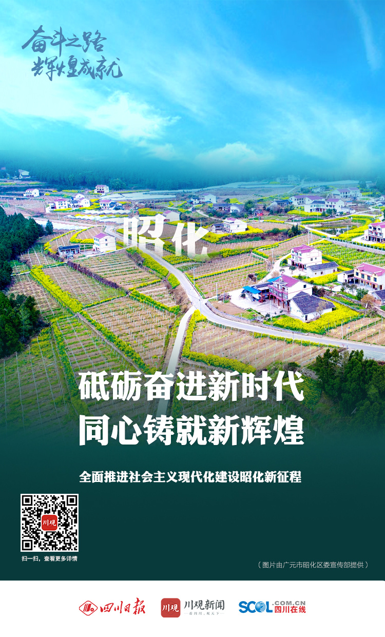 助推成渝地区双城经济圈建设,做大做强经济增长主引擎,打造“双百亿”产业集群,深入实施乡村振兴战略,进一步推进文旅深度融合,建设高品质、宜业宜居广元东部新城,不断深化改革,办好民生实事。24万昭化儿女将为奋力谱写全面建设社会主义现代化四川新篇章贡献力量!