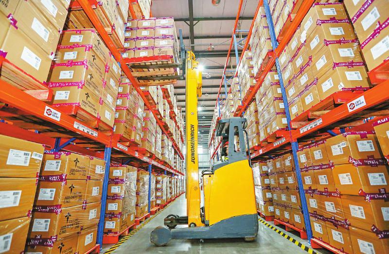 2020年2月27日,成都铁路保税中心叉车工人在配装出口至欧洲的货物。