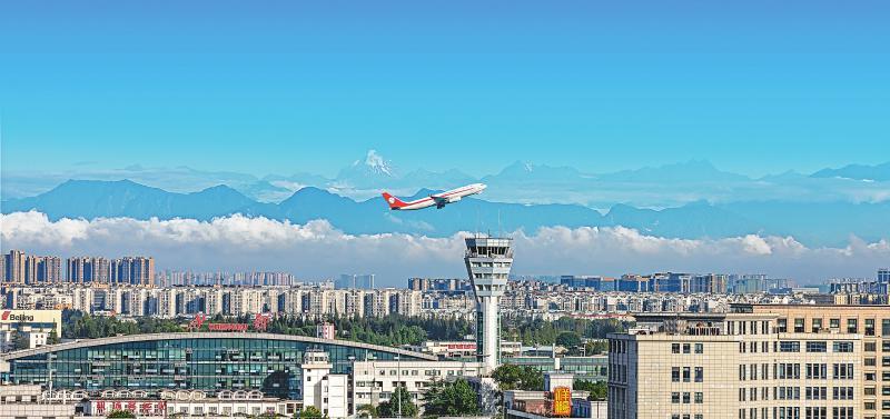 飞机从成都双流国际机场起飞。