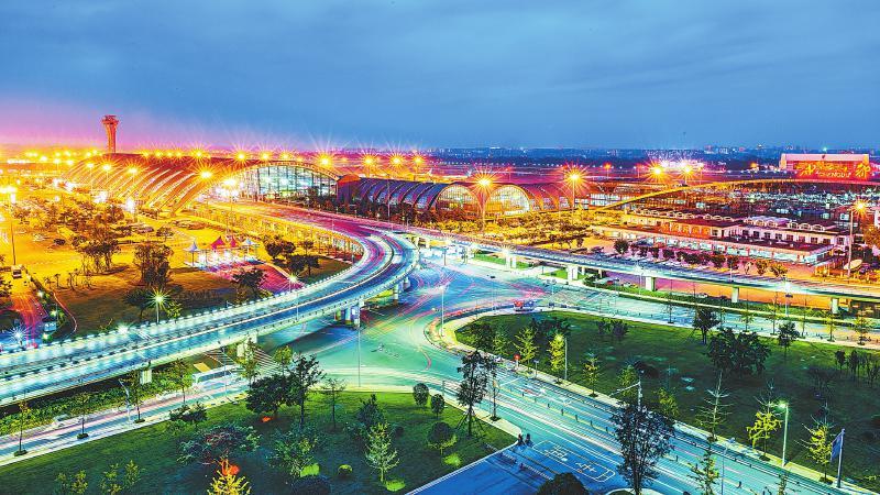 夜幕下的成都双流国际机场。