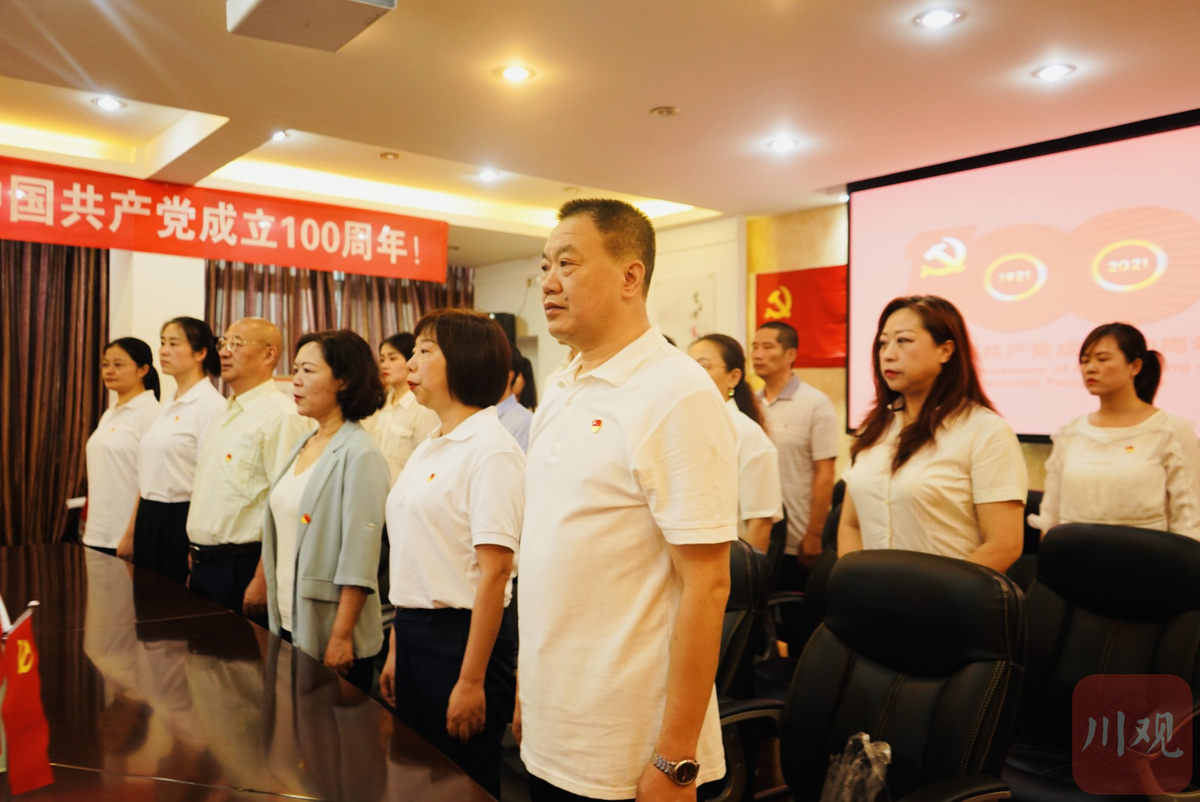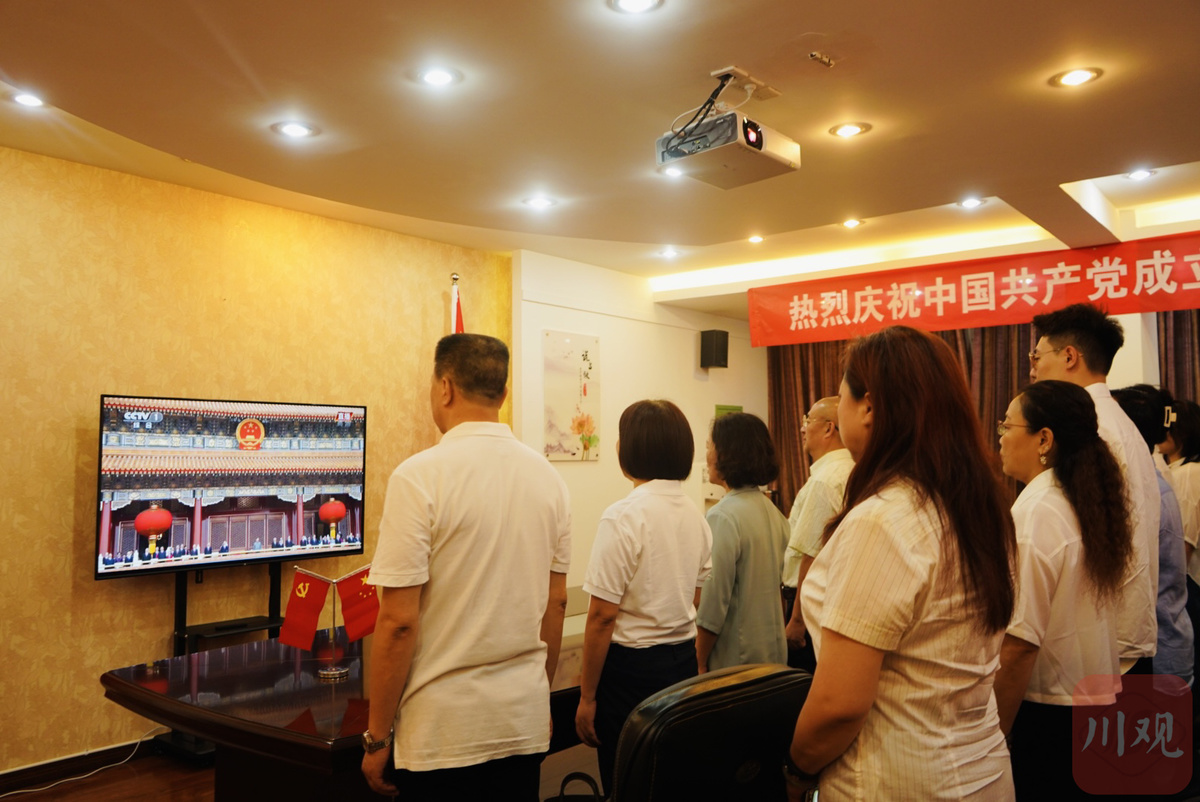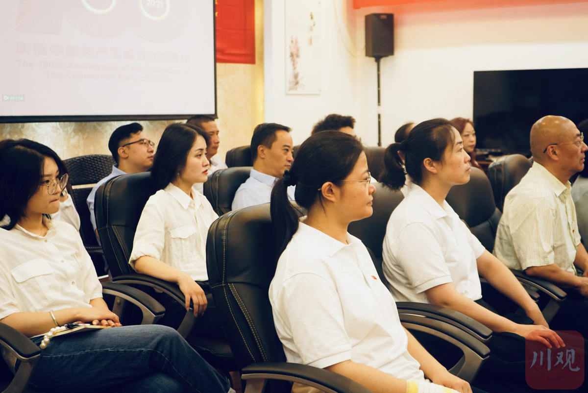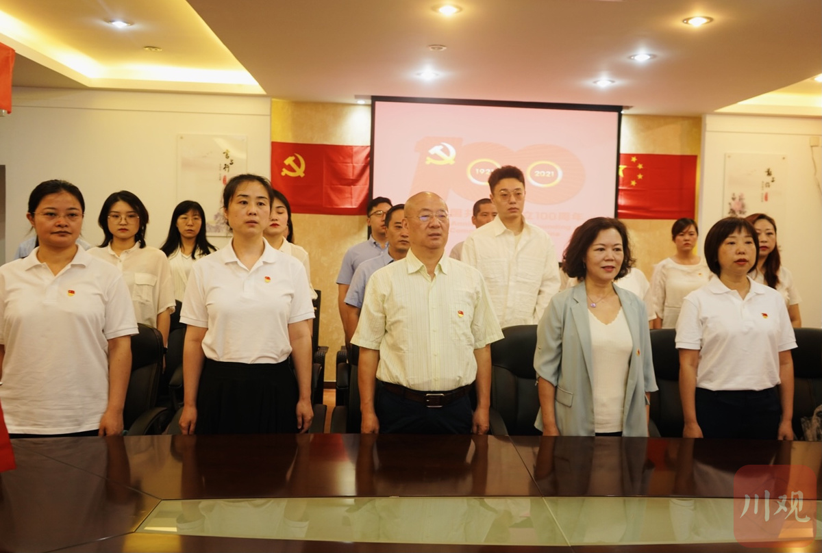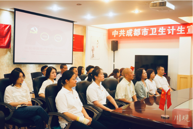 红色,是今天成都市卫生计生宣传教育中心的主打色——红色党旗、戴有红色的党员徽章、唱红歌、印有“热烈庆祝中国共产党成立100周年”的红色横幅......不断增多的红色元素,扮靓了这个成都市卫生健康宣传工作的主阵地。