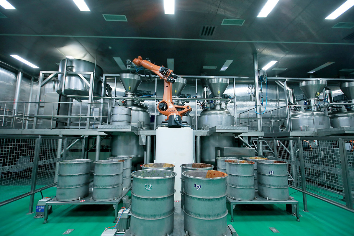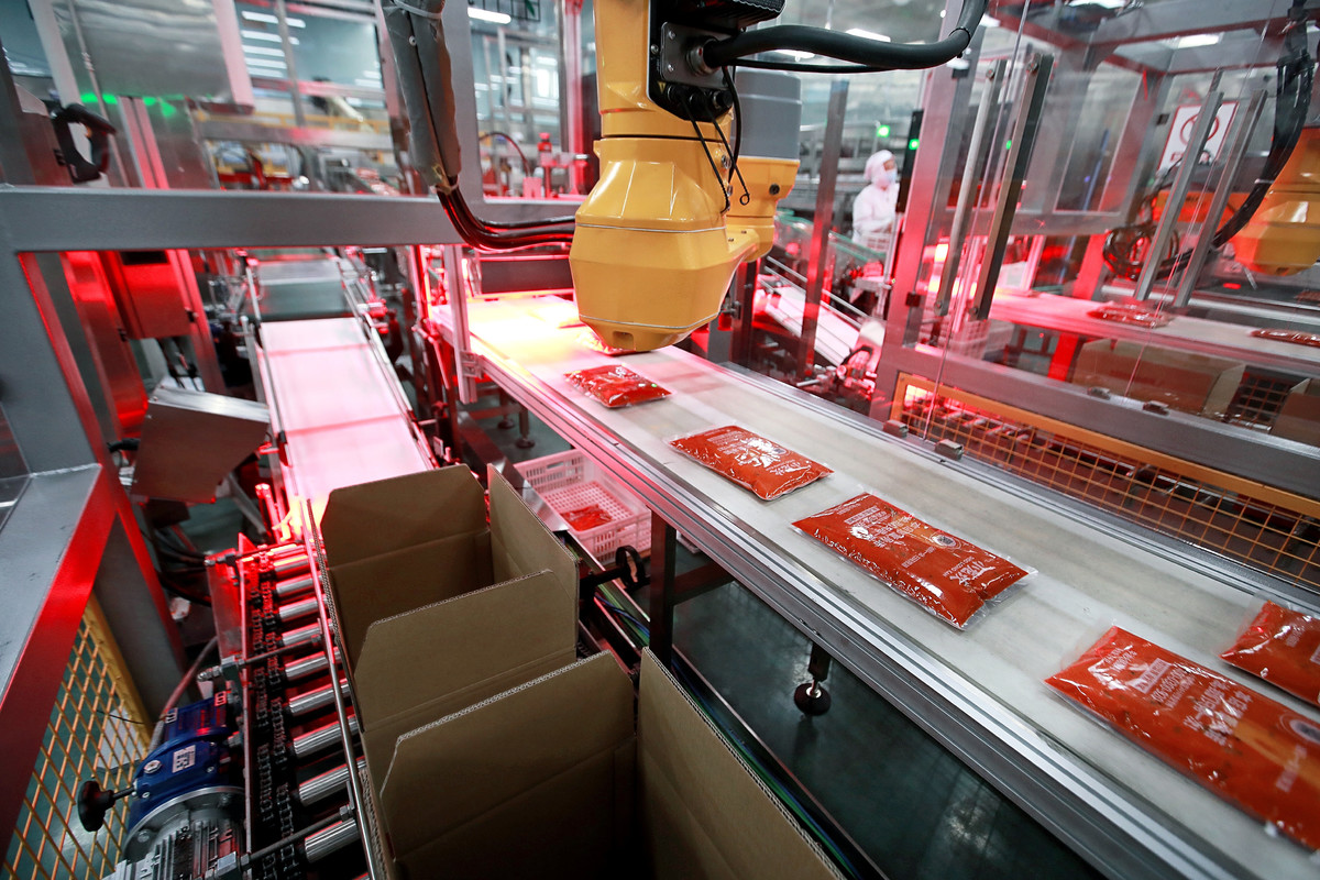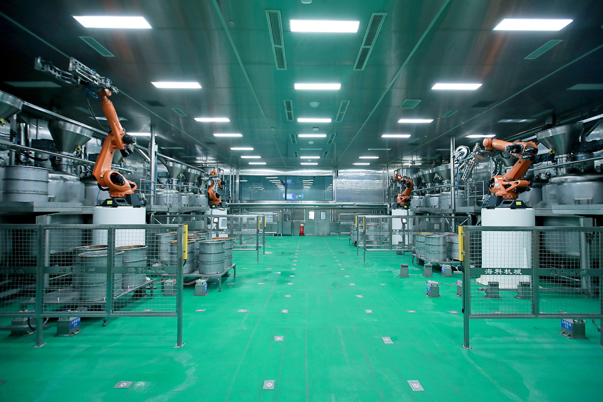 在厂区7号车间内,全智能化的无尘生产空间,机器人手臂、AGV自动运输小车……熟练地运转着,让四川在线记者恍然以为这是一条汽车柔性化智能生产线。据介绍,这一柔性化的火锅底料智能生产线,使用了来自西门子的软硬件数字化方案及工业云Mindsphere物联网系统。同时严控原材料采购源头,可生产半固态调味品类(即火锅底料和其他调味料类)产品达84个品类230种。