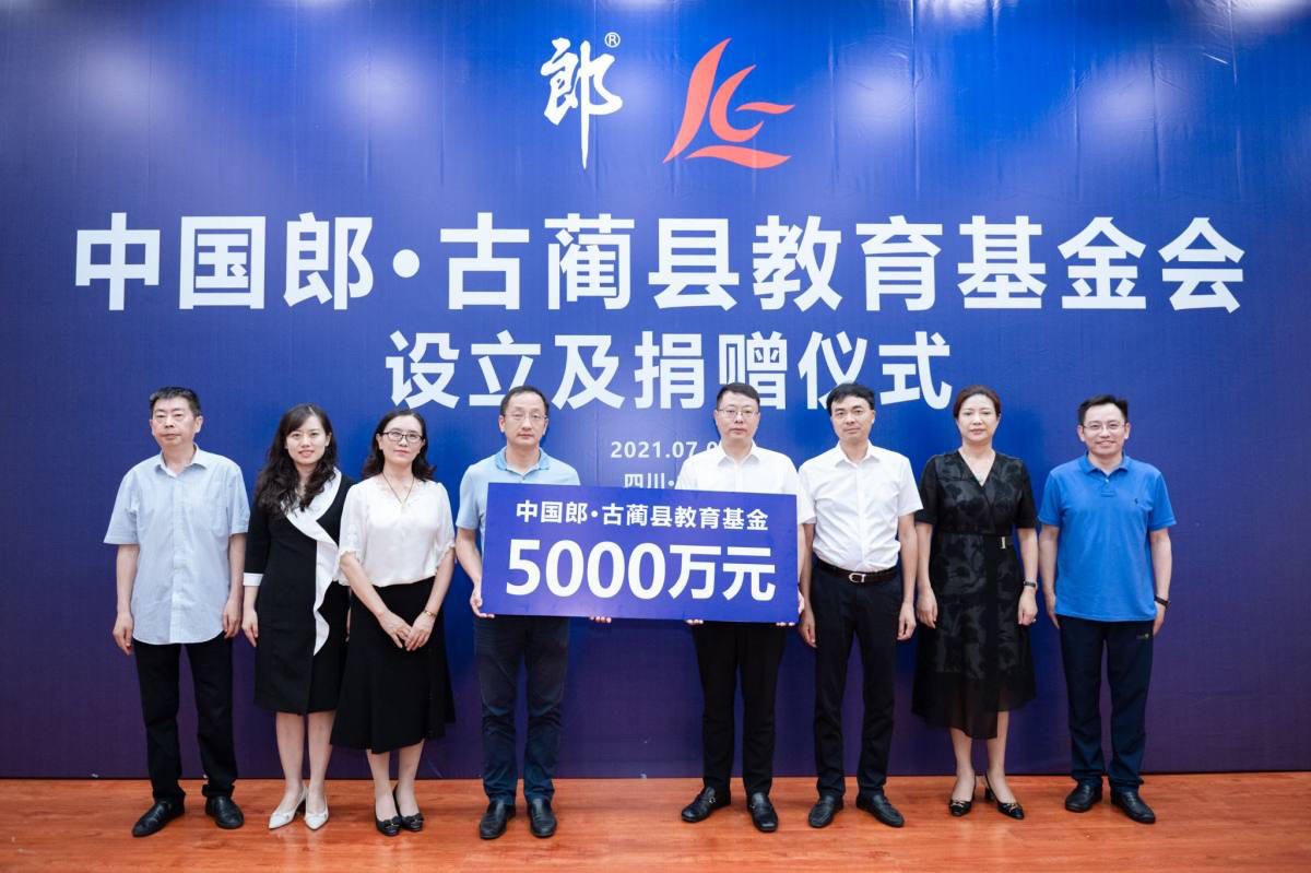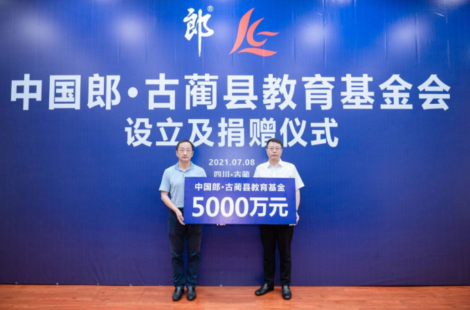 全程11分钟,总额5000万的捐资助学仪式完成从开场到签约。7月8日,中国郎·古蔺县教育基金会设立及捐赠仪式在古蔺县举行,当天郎酒股份向古蔺县捐赠总额5000万元教育基金,帮助、支持古蔺县发展地方教育事业。捐款用途包括奖励优秀教师,奖励优秀学生,以及资助贫困学生三方面,总额5000万元的捐赠将分5年完成,从2021年起,每年实现捐赠1000万元。