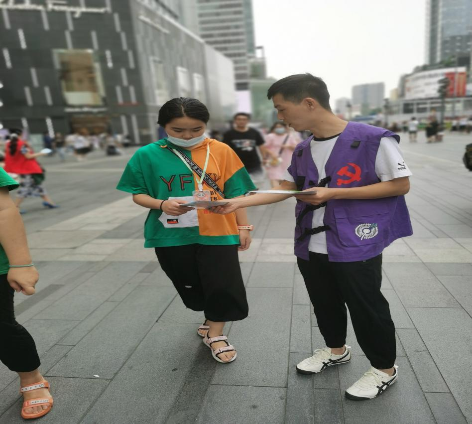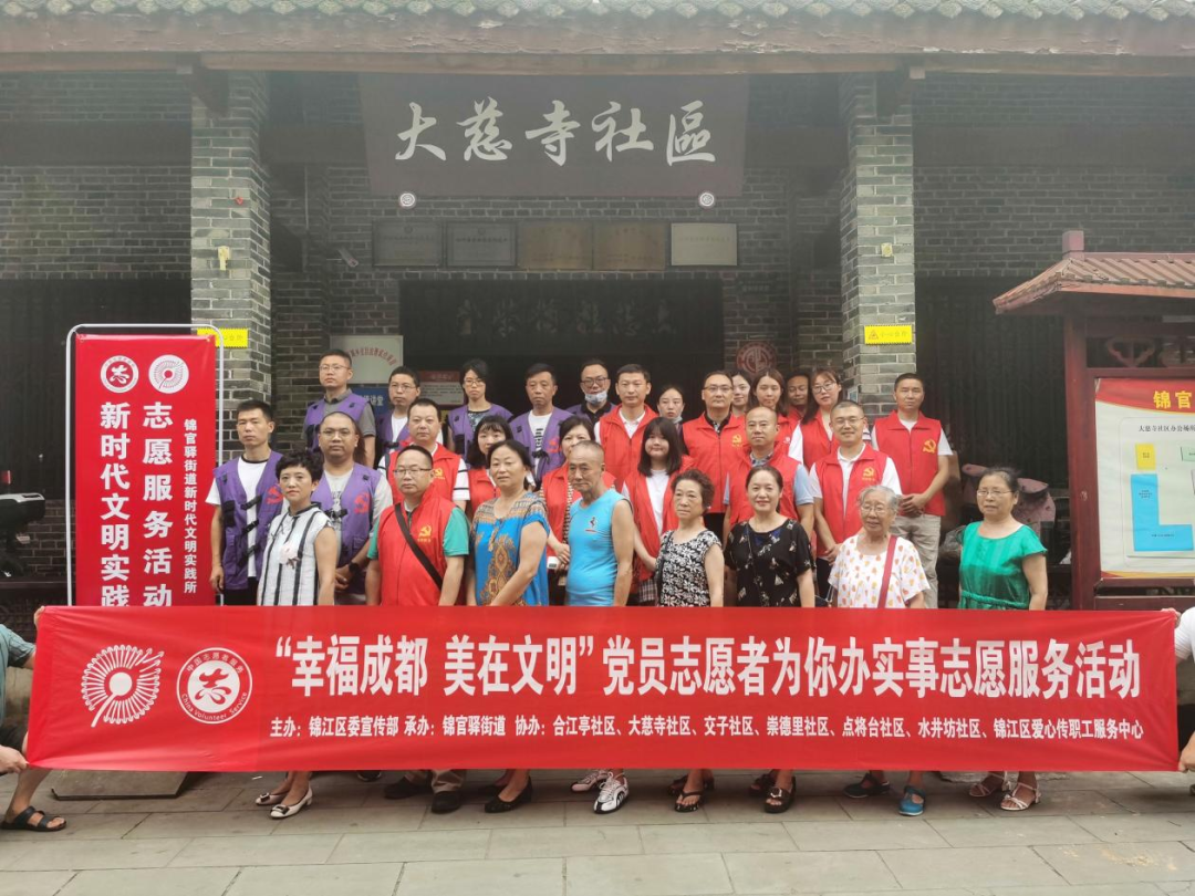 7月13日上午,锦江区委宣传部联合锦官驿街道及所属各社区党员,在该辖区开展“幸福成都 美在文明”党员志愿者为你办实事志愿服务活动。活动包含“为辖区群众送清凉、慰问困难群众,分发安全手册、垃圾分类宣传资料,职工心理体检”四个内容,50余名党员志愿者分成4个小组进行。