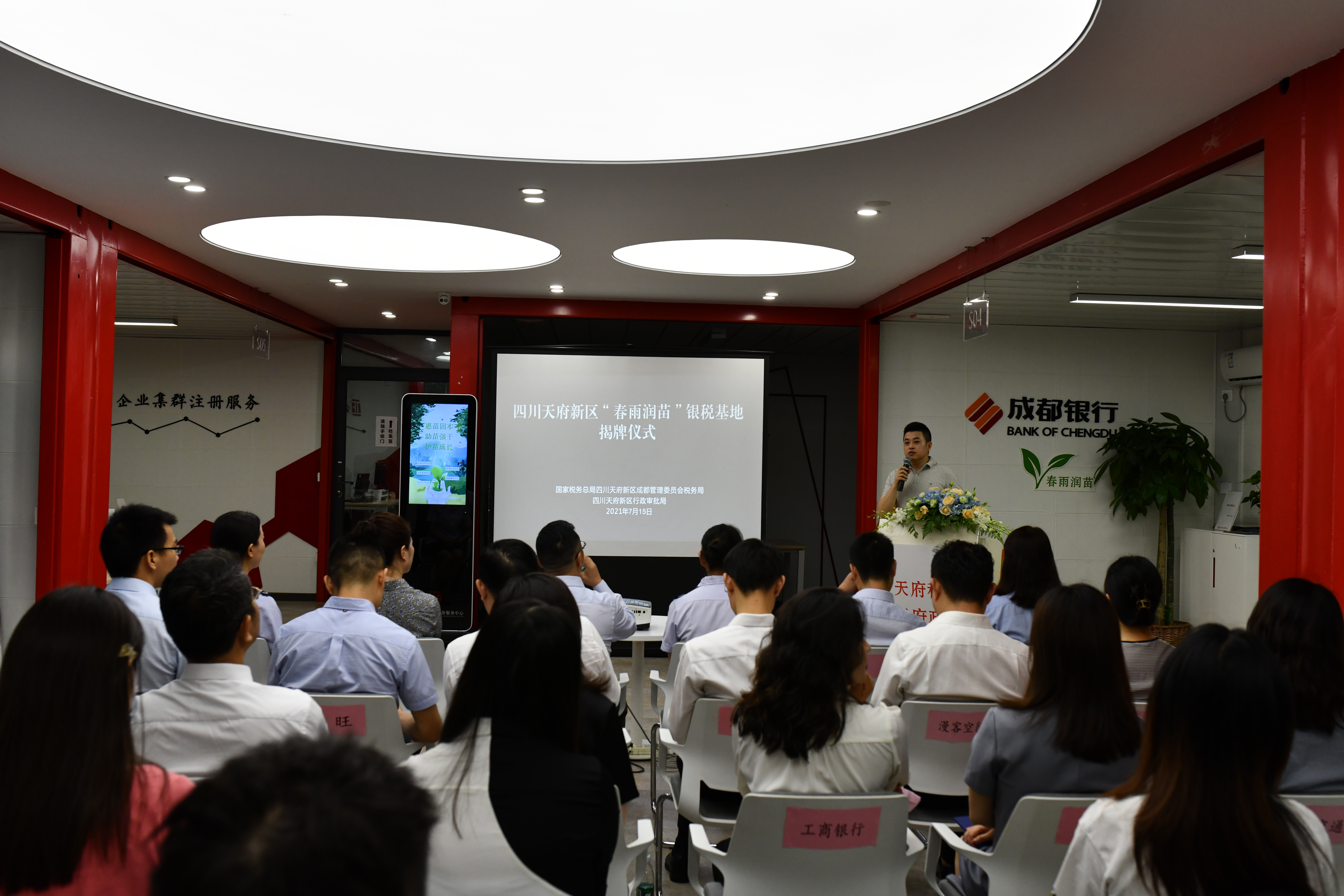 为推进落细落实减税降费政策,持续优化小微企业税费服务,天府新区税务局与天府新区行政审批局共同开展2021年助力小微企业发展“春雨润苗”专项行动,7月15日,四川天府新区“春雨润苗”银税基地在天府新区首贷服务中心正式揭牌。