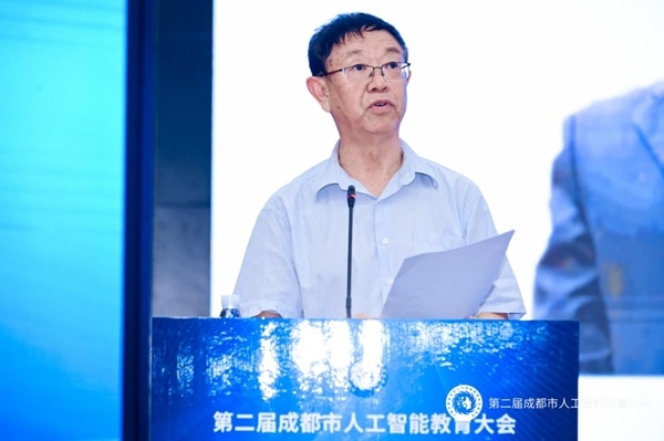 大会开幕式上,成都市教育学会会长王志坚首先发表了致辞,探讨了人工智能教育在当下教育中的应用目标与方式。智能时代,教育应更加注重培养人的本质,同时重构教育的体系与方式,顺应科技发展,为国家培养科技素养的复合人才,为人工智能与教育的融合发展贡献一份力量。