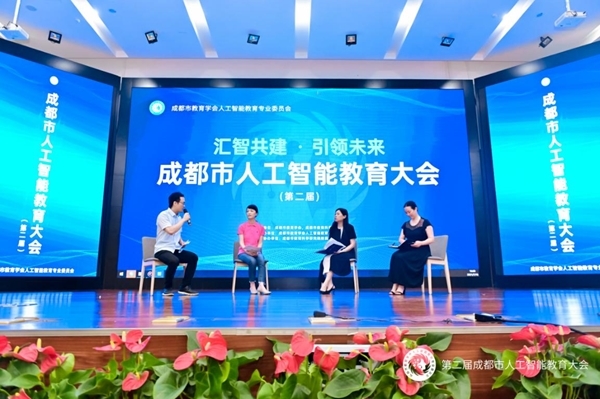大会的最后,以《汇智共建·引领未来》为主题的圆桌论坛由电子科技大学张千明博士主持,成都七中初中学校校长李笑非,成都市龙江路小学分校党支部书记、校长段晓莉,成都师范银都小学校长文莉共同参与讨论。
