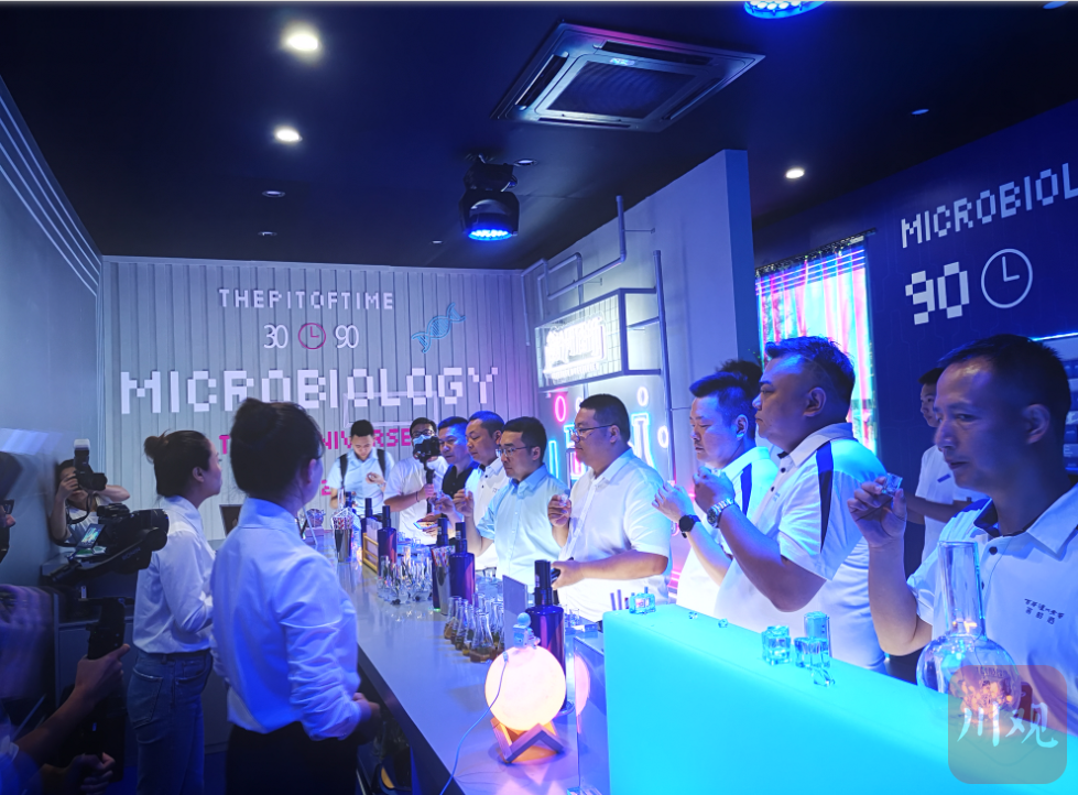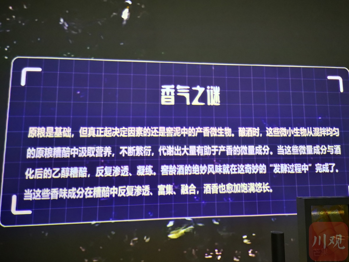 “微生物宇宙”空间,为每一位探索者构建出一个壮观的“星河奇景”。组成灿烂星河的最小单位,就是不断繁衍的有益微生物菌群,它们是决定酒质好坏的关键——一瓶好酒的密码,就是窖池的窖泥中富集的有益微生物越多,酒质越好。而一口窖池不间断持续使用的时间越长,其富含的有益微生物菌群就越多,所酿之酒就越好。