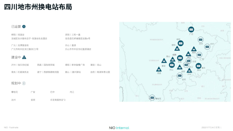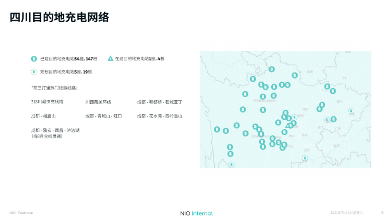 考虑到四川作为旅游大省,蔚来非常看重在旅游线路的布点。目前已经打通的大快充线路包括稻城亚丁、藏羌环线和318环线。去泸沽湖这条线,随着雅安和西昌8月份一上线,整条线就能完全贯通,这条线路还会延伸攀枝花到昆明。同时,成都-自贡-泸州-遵义-贵阳的线路也将在8月份贯通。可以说,从成都出发,到重庆、贵阳、昆明,整个西南地区的补能路线基本上都已经布好了,就等最后的完全上线。