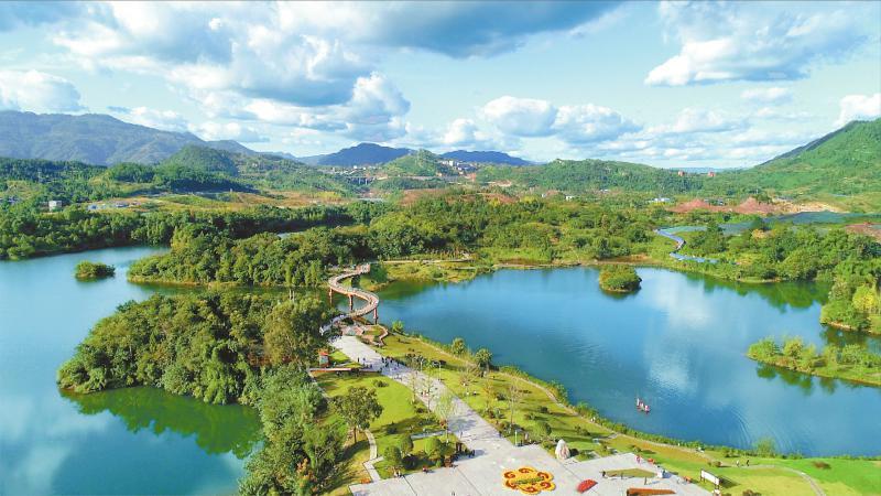 农发行四川省分行贷款支持的达州市莲花湖湿地生态修复综合治理(一期)。