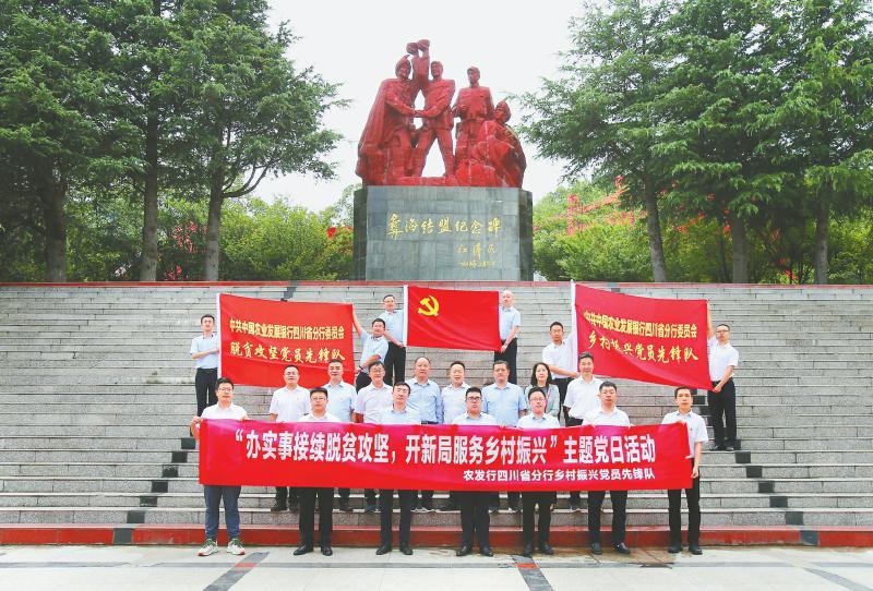 农发行四川省分行脱贫攻坚和乡村振兴党员先锋队在凉山彝海结盟纪念碑前交接工作并开展主题党日活动。