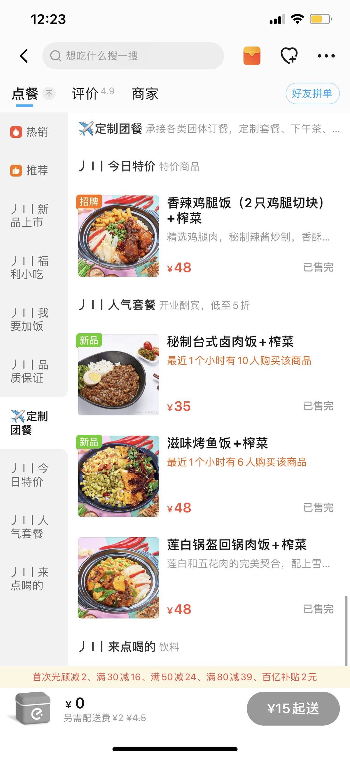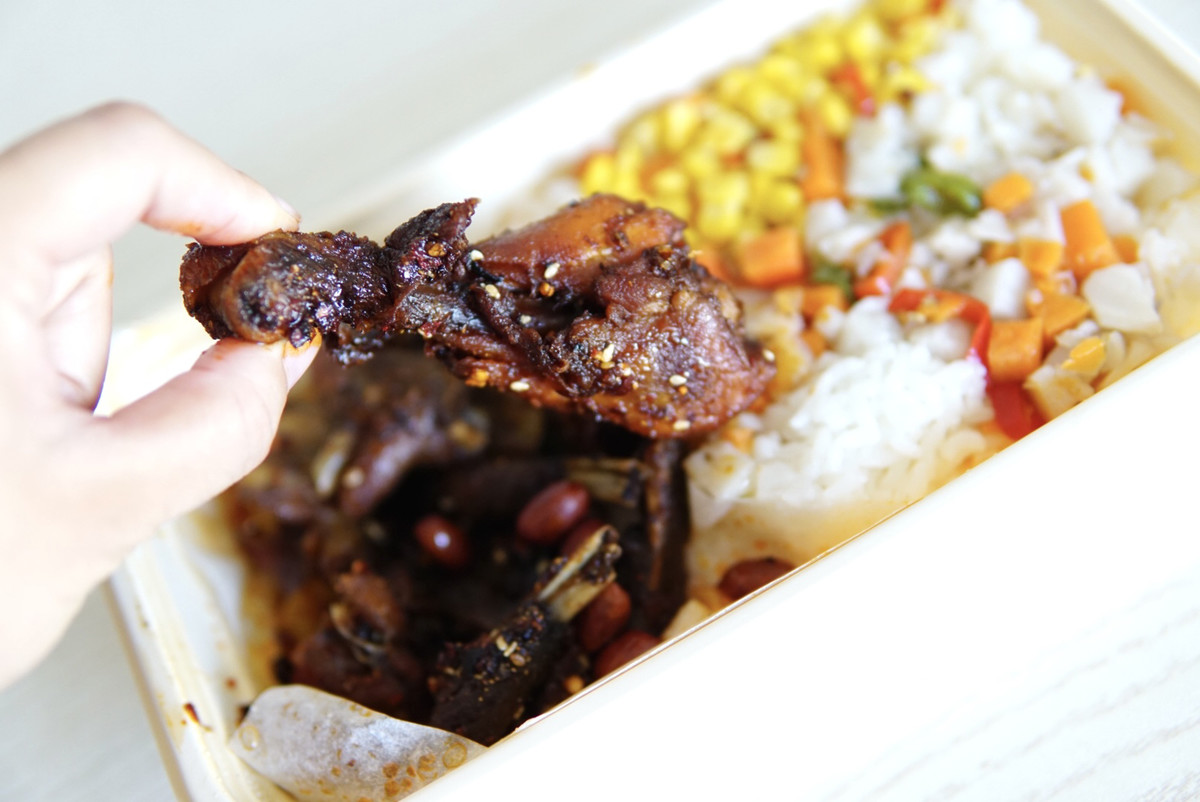 “开业近一个月了,每天中午几乎供不应求,秘制兔腿饭和卤肉饭点单率最高。”川航美肴餐厅工作人员说,外卖平台在售的有兔腿饭、鸡腿饭、小龙虾盖饭等多个套餐,配送的餐具包装和飞机上的一摸一样,连“老干妈”也都是每餐配备的。