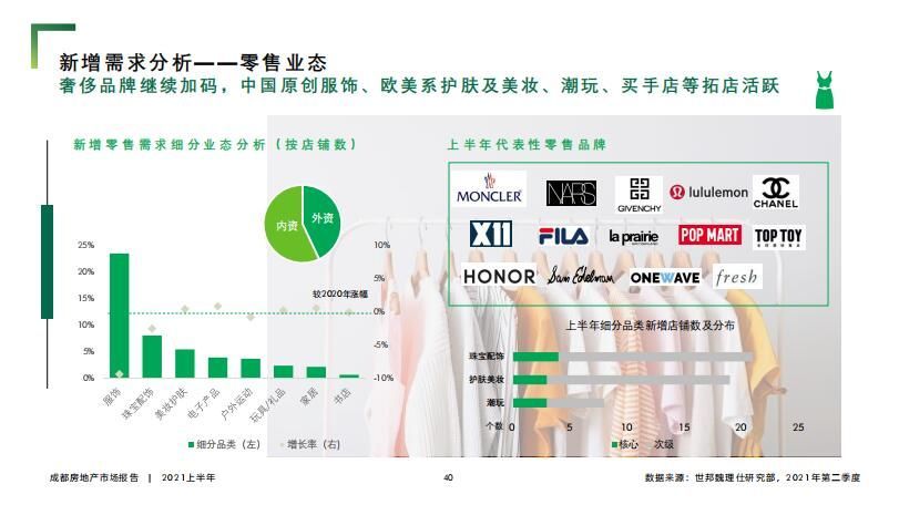 着眼品牌商,奢侈品牌继续加码成都,中国原创服饰、欧美系护肤及美妆、潮玩、买手店等需求活跃;国际餐饮品牌下沉至次级商圈,顶级甜品店入蓉,本土餐饮品牌崛起;体验业态全面复苏,街舞、教育培训等积极扩张;新能源汽车品牌延续活跃态势。