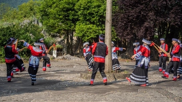 除了神秘的古僰文化,兴文还是四川最大的苗族聚居县,因此在景区处处彰显着浓浓的苗家特色:苗寨记录着苗家人生活的日常点滴,热情好客的苗家姑娘捧着苗家米酒喜迎游客,苗家小伙吹起芦笙与姑娘们载歌载舞,特色长桌宴、水八碗、猪儿粑等特色美食吸引着八方食客……这些都是景区为了让游客来这里有更好的游玩体验而打造出的特色项目,让大家在游览山水之余,感受绮丽的苗族风情。