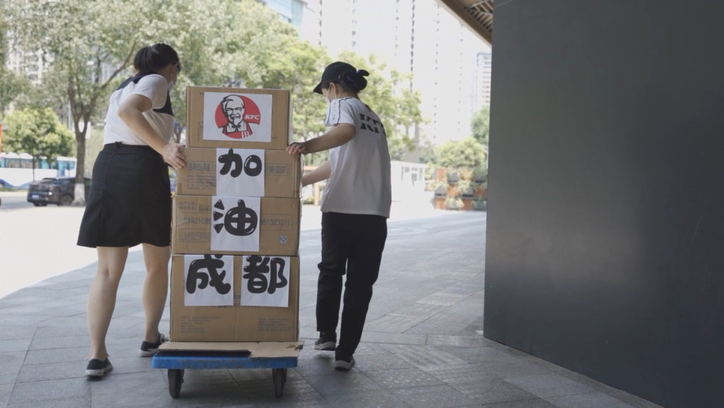 在疫情防控一线,医护人员用辛劳付出,守护万家灯火;在封控区,肯德基、伊藤洋华堂、麦德龙等店家的工作人员也在坚守,确保食品、物品正常配送,保障封控区居民生活无忧与烟火气。