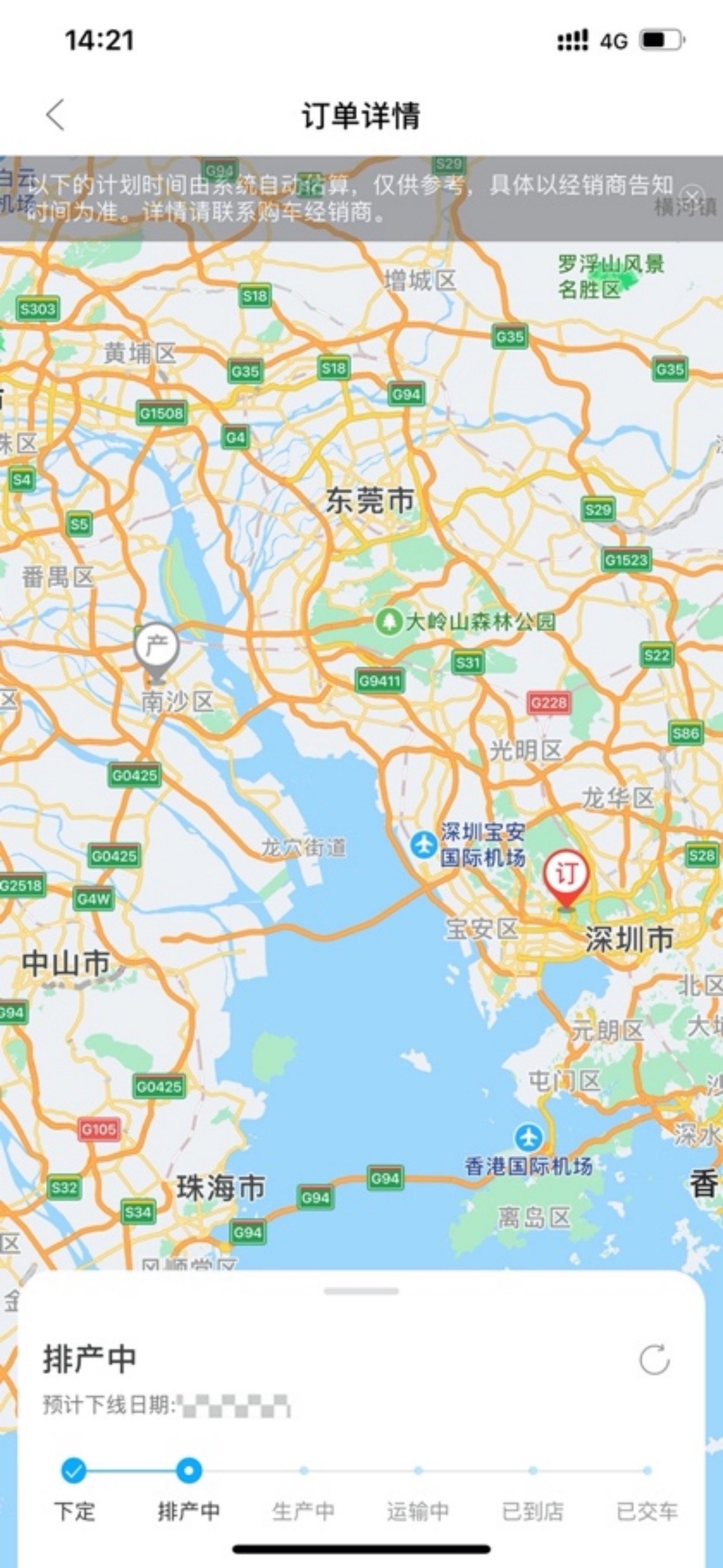 用户下订后,3天内到经销店签订购车合同,按照厂商建议零售价支付尾款;经销店上传资料后,丰云行App发送“预计生产日期”通知,按下订时间排队,先订先提。新车物流过程可视化追踪,通过地图模式向用户展示。同时,用户还可在丰云行App上查看新车进程,“下订、排产、生产、运输、到店、交车”各节点,丰云行App都会给用户发送提醒,做到新车交付心中有数。