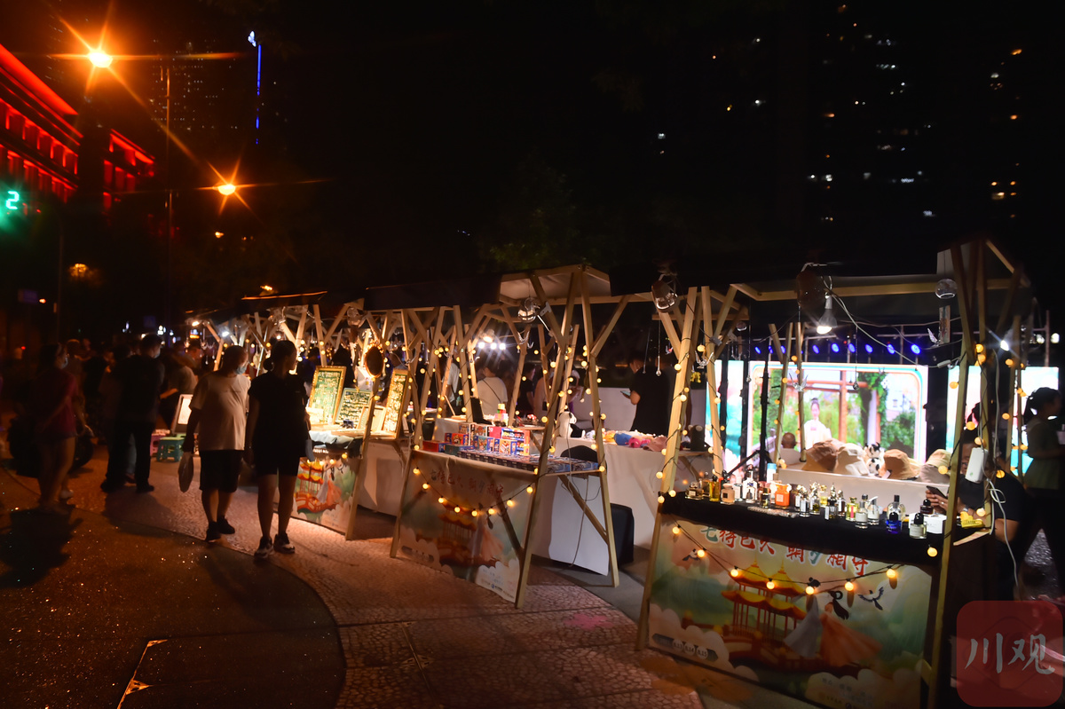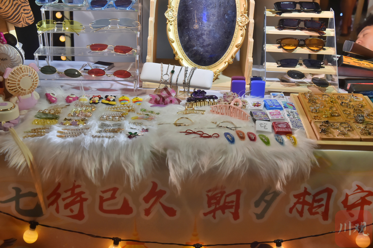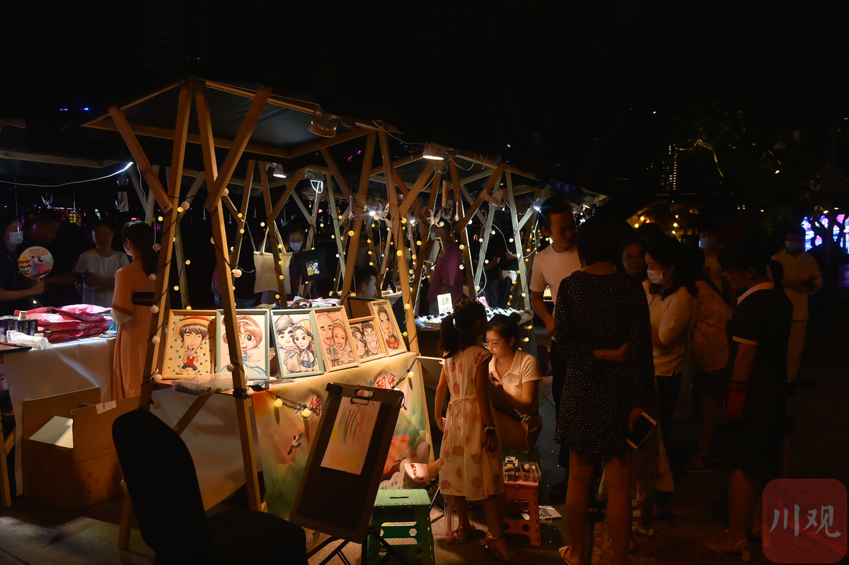 在庆龄码头,兰桂坊、大川巷酒吧等商家为广大市民酝酿了一场高浓度浪漫风暴,情侣专属优惠、双人互动游戏、限定爱情特调等处处都是节日微醺的浪漫。成都市民白小琳一边小酌,一边向记者竖起大拇指点赞道:“今天七夕,跟男朋友一路从合江亭那边走过来,氛围布置得太好了,有逛的、有玩的,走到这里听到有人在唱歌,坐下来喝一杯吹吹风,是我向往的情人节了!”