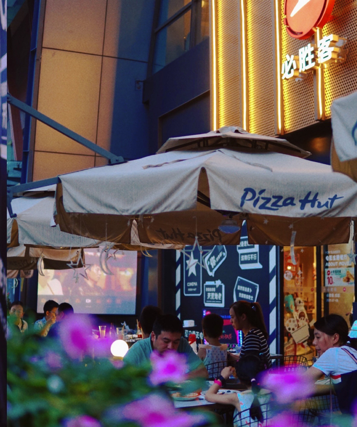 “七夕节,我们全家人出来吃饭,看这里还可以看电影,两个孩子就不想走了。”家住华侨城的龚丽女士说。每晚的“露天电影时间”,既延长了自身的营业时间,也是对自身收入的另一种补充。同时,必胜客还推出了法式红酒后切慢煮牛肋、铂金和牛超至披萨等一系列新品,作为看电影食客们的新选择。电影元素作为必胜客休闲文化的另一种表现形式,涉足夜经济的休闲餐饮,满足了用户的需求,搭建起了与用户沟通的桥梁,有效的为店铺增加了营收,并助力品牌在经营模式上进行全新的探索,可谓一举多得。