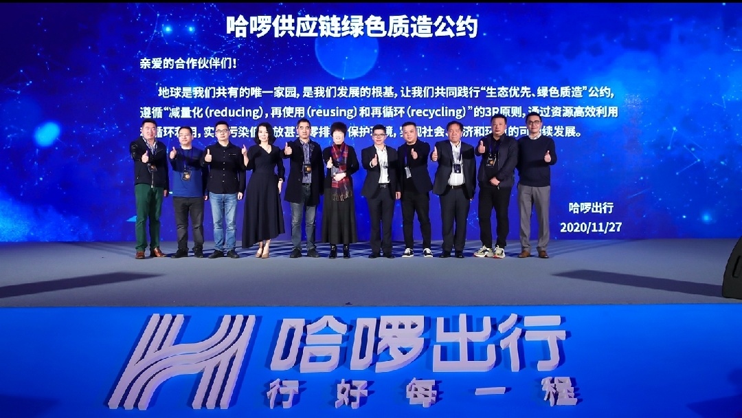 车辆的生产制造环节还有很大的减排空间,因而在减碳事业上必须与产业生态伙伴们携手同行。2020年11月,哈啰面向近400家合作企业发起了“绿色质造公约”,之后又于2021年3月在共享出行行业内发布首份碳中和倡议书,呼吁全行业推动绿色发展、促进资源节约与高效利用。
