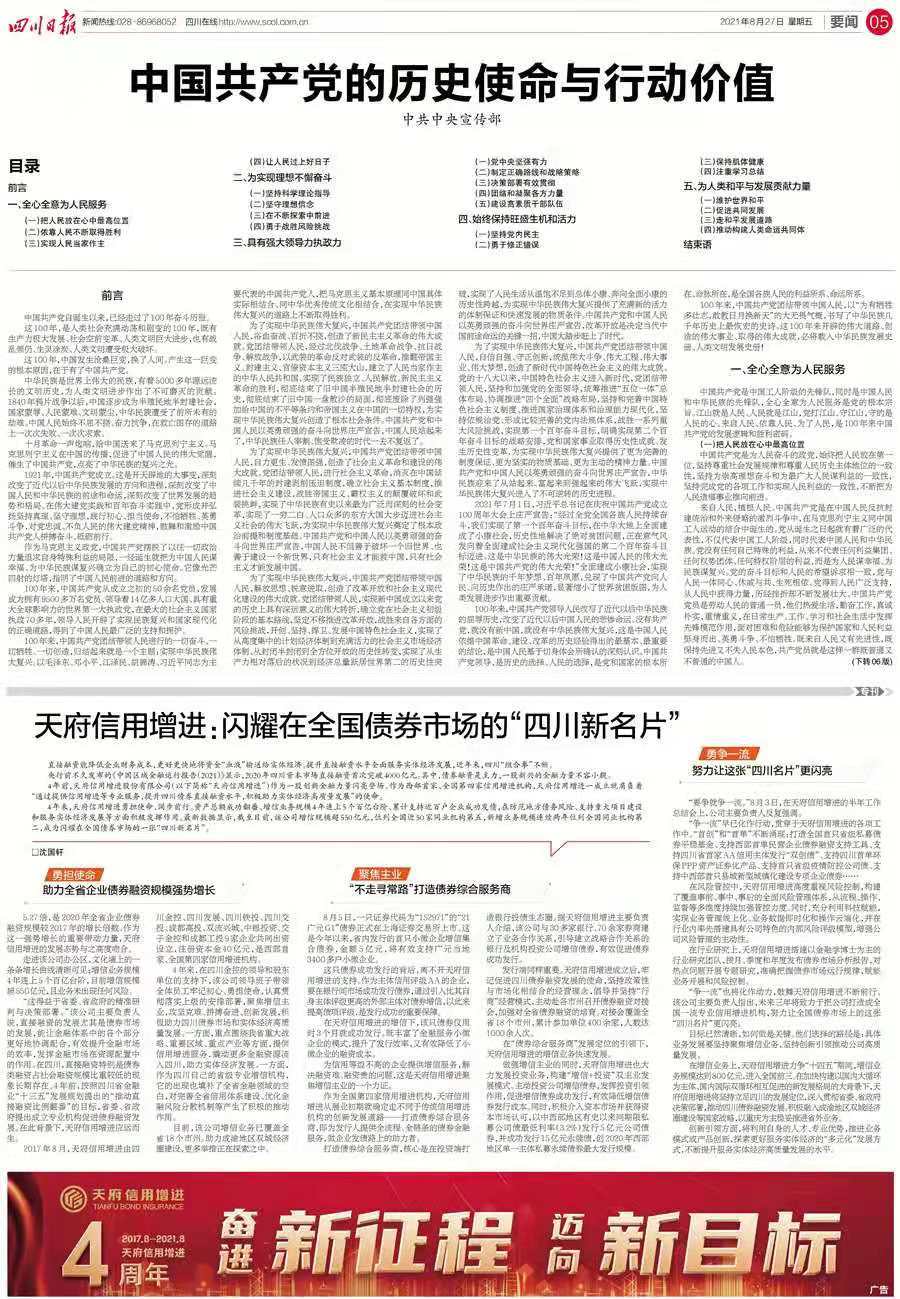 4年前,天府信用增进股份有限公司(以下简称“天府信用增进”)作为一股创新金融力量闪亮登场。作为西部首家、全国第四家信用增进机构,天府信用增进一成立就肩负着“通过提供信用增进等专业服务,提升四川债券直接融资水平,积极助力实体经济高质量发展”的使命。